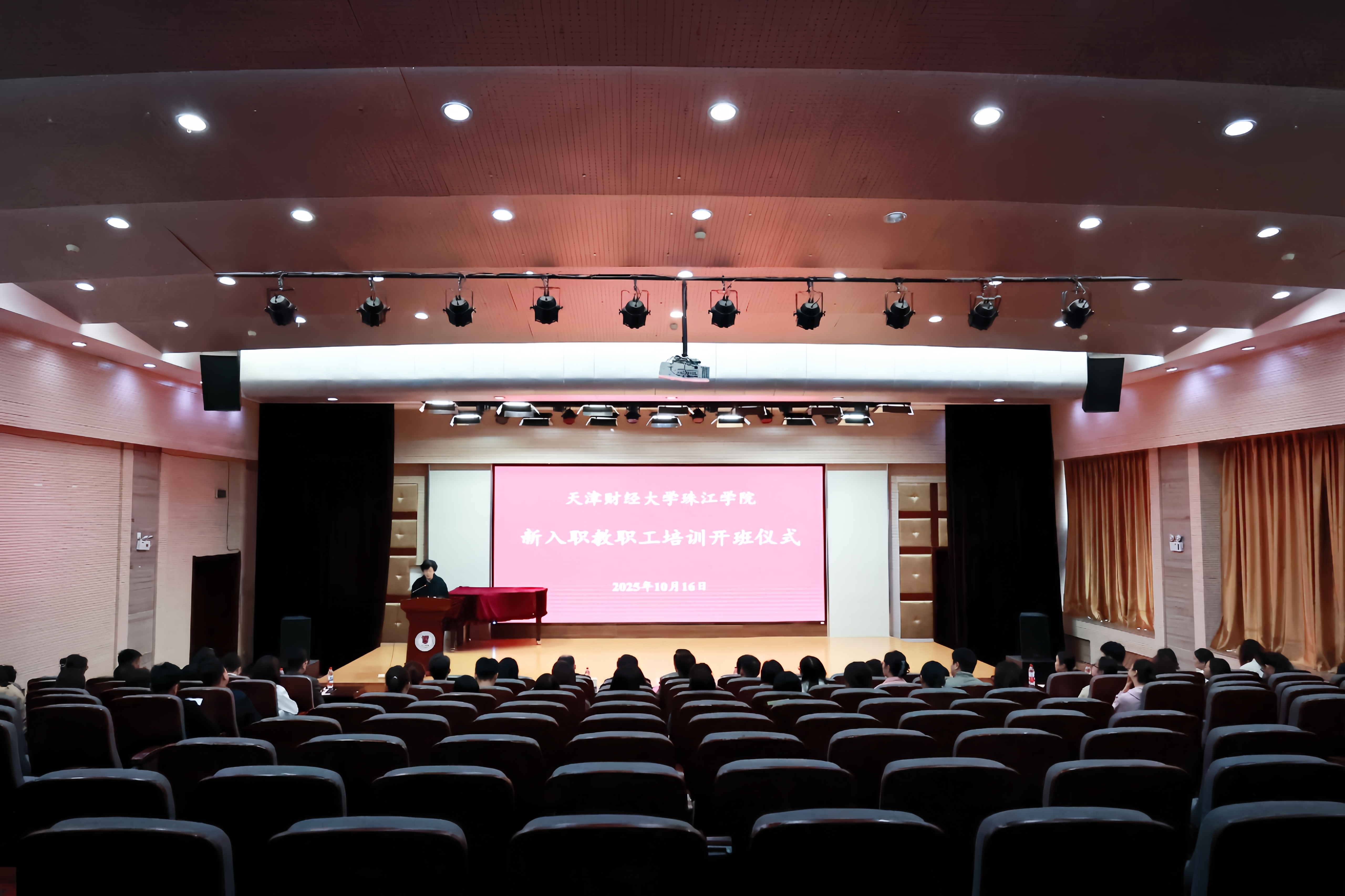 10月16日下午,2025年新入职教职工培训开班仪式在弘毅楼报告厅举行。院长任碧云,副院长李晓鹏,党委副书记、纪委书记白晓,教务长时憧宇出席,新入职教职工及现任教师代表参加开班仪式。党委副书记、纪委书记白晓主持开班仪式。