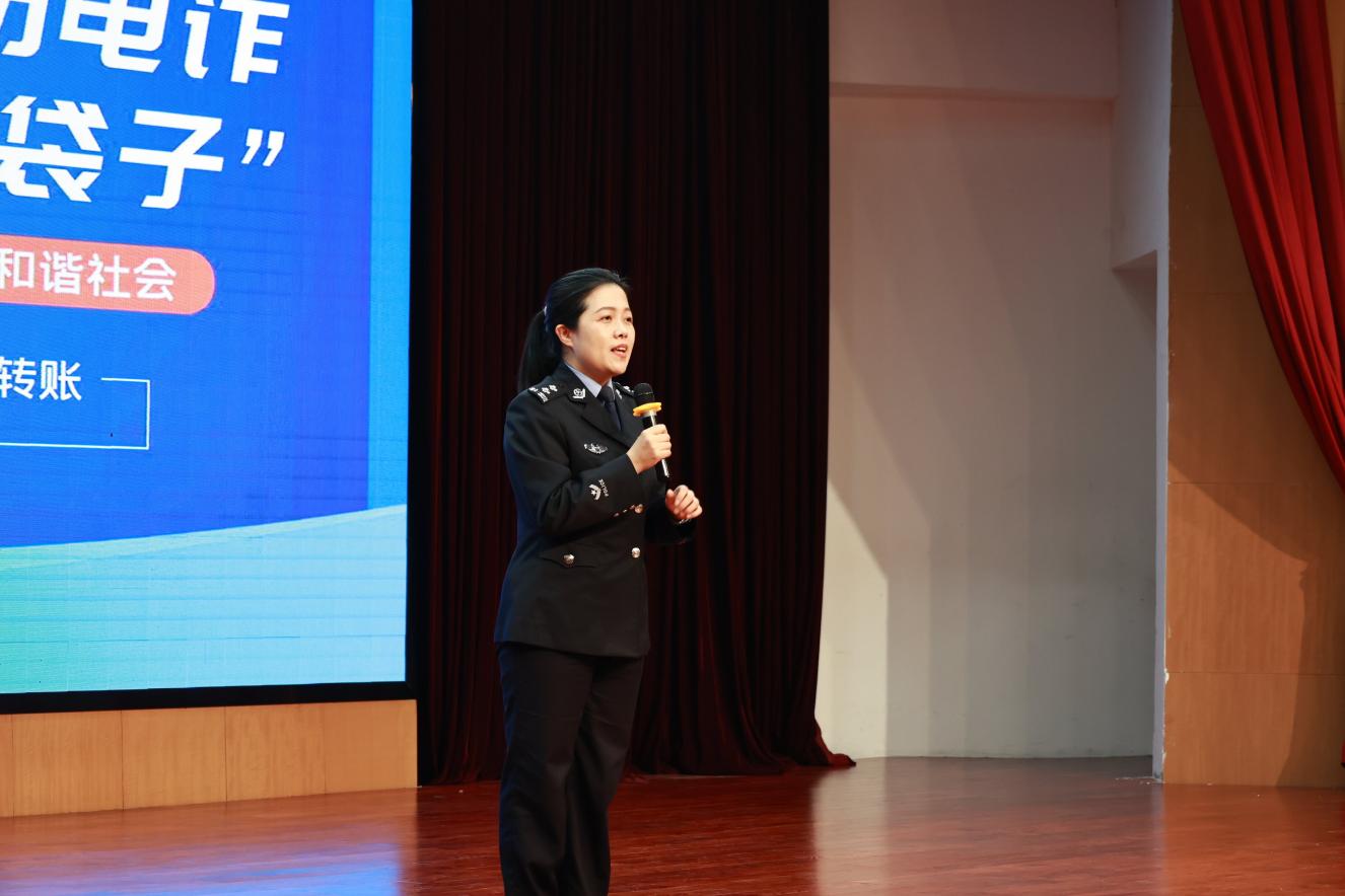 文艺演出环节以反诈宣传为主线,形式多样、内容丰富。歌曲《全民反诈》,以激昂歌声唱出全民参与反诈的坚定心声。小品《反诈联盟》通过生活化剧情,生动揭露“天上掉馅饼”背后的诈骗陷阱,引发师生强烈共鸣。公安宝坻分局反诈中心民警朴仲一带来的改编歌曲《反裸聊阵线联盟》,用接地气的歌词与表演传递实用反诈知识,瞬间将现场气氛推向高潮。此外,曾获天津市“反诈行行行”活动先行奖的国家级非物质文化遗产京东大鼓《绷紧反诈这根弦》,以及《平凡之路》《祝你平安》等节目接连登场,让师生在艺术熏陶中轻松学习反诈知识,将平安理念深植心中。