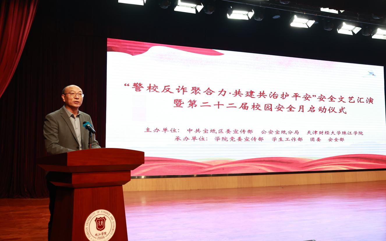 为进一步增强师生反诈意识和能力,宣传校园安全文化,形成反诈合力,10月29日下午,“警校反诈聚合力 共建共治护平安”安全文艺汇演暨第二十二届校园安全月启动仪式在中和楼报告厅顺利举行。宝坻区委宣传部副部长吕智伟,公安宝坻分局副局长李文杰,学院党委书记梁海龙,副院长杜展鹏,党委副书记、纪委书记白晓,院长助理郭鑫、赵梦蝶出席活动,学院相关部门、单位负责人及千余名师生齐聚现场,在视听盛宴中共享校园安全文化建设成果。