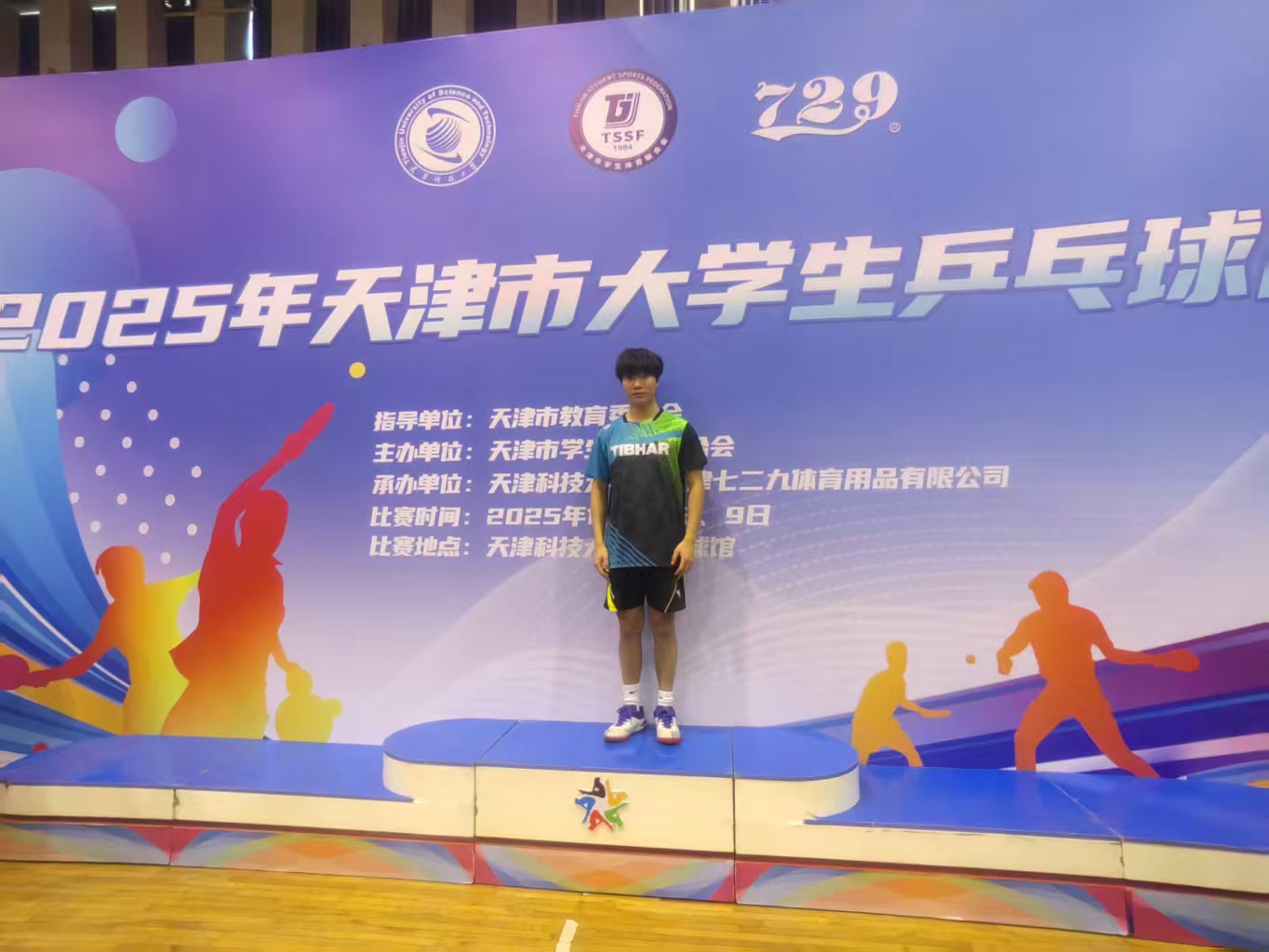 11月7-9日,2025年天津市大学生乒乓球比赛在天津科技大学举行。由体育课部尹建平老师指导的9名学生组成代表队参赛,最终我院乒乓球队周誉同学喜获本科院校组男子单打第四名的优异成绩。
