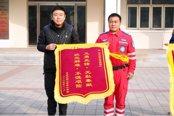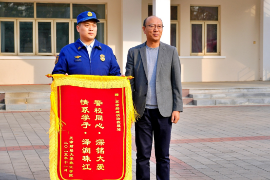 活动伊始,学院党委书记梁海龙、院长助理郭鑫代表学院向长期支持校园消防安全工作的京津新城消防救援站和将城应急救援队分别赠送了锦旗,承载着学院全体师生对两支专业队伍守护校园安全、普及生命技能的诚挚敬意与衷心感谢。