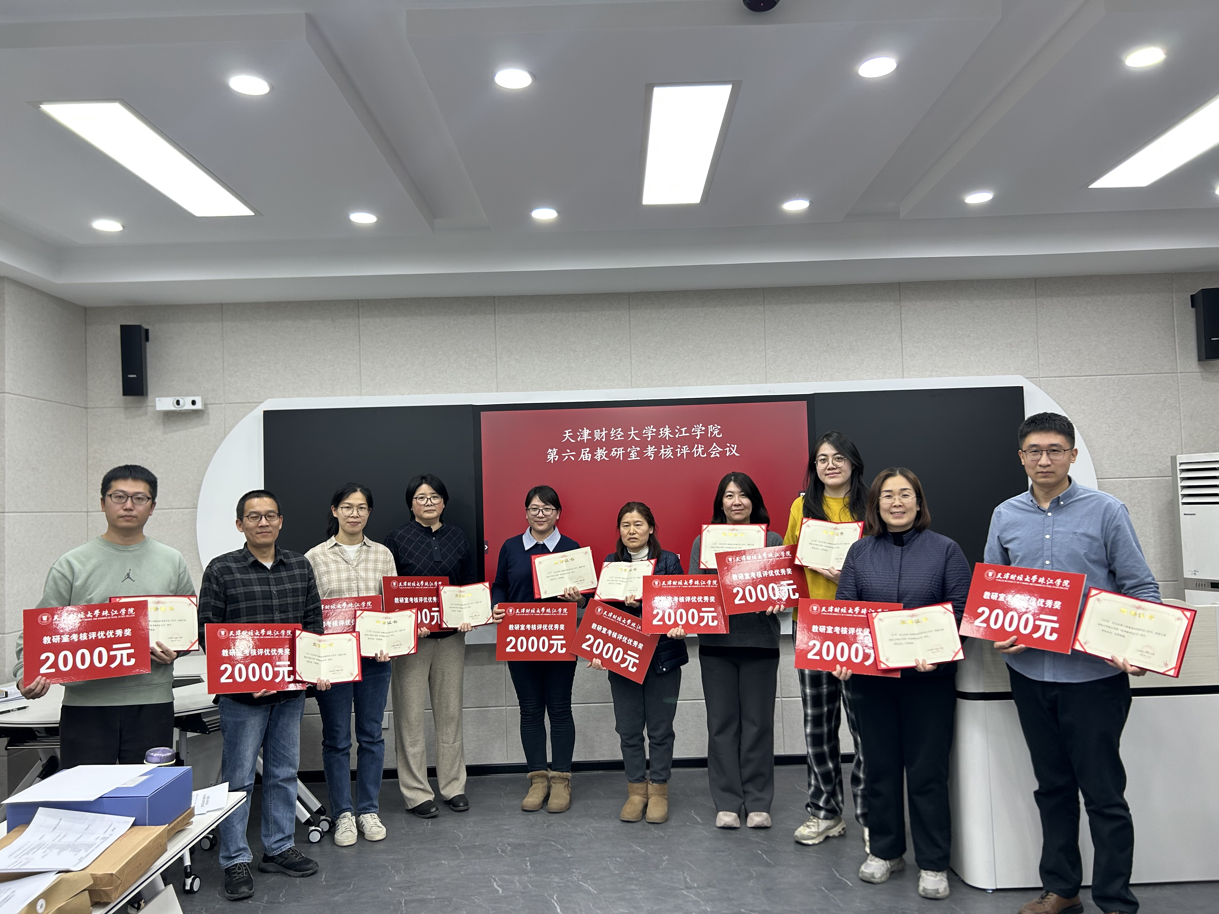 会上,毛亚琼部长介绍了第六届教研室考核评优工作会的目的、要求和主要内容。本次参评教研室共计49个,经教研室自评、教学单位基层评审,共计18个教研室参加学院终评。各教研室分别从教研室基本情况、制度建设、师资队伍建设、教学组织与运行、教学改革与建设、教学管理及质量监控等方面进行汇报,各位评委对照《教研室考评指标体系》进行综合评价与打分。最终财务管理教研室、企业管理教研室、会计学教研室、人工智能教研室、金融科技教研室、国际贸易教研室、学前教育教研室、数据工程教研室、视觉传达教研室、基础英语教研室10个教研室被评选为“第六届天津财经大学珠江学院优秀教研室”,徐海莉、吴晓娟、武桂芳、杨艳华、边晓宇、马德隆、杜学文、苗菲、郑楠、胡志坤10位教研室负责人被评为“第六届天津财经大学珠江学院优秀教研室主任”。