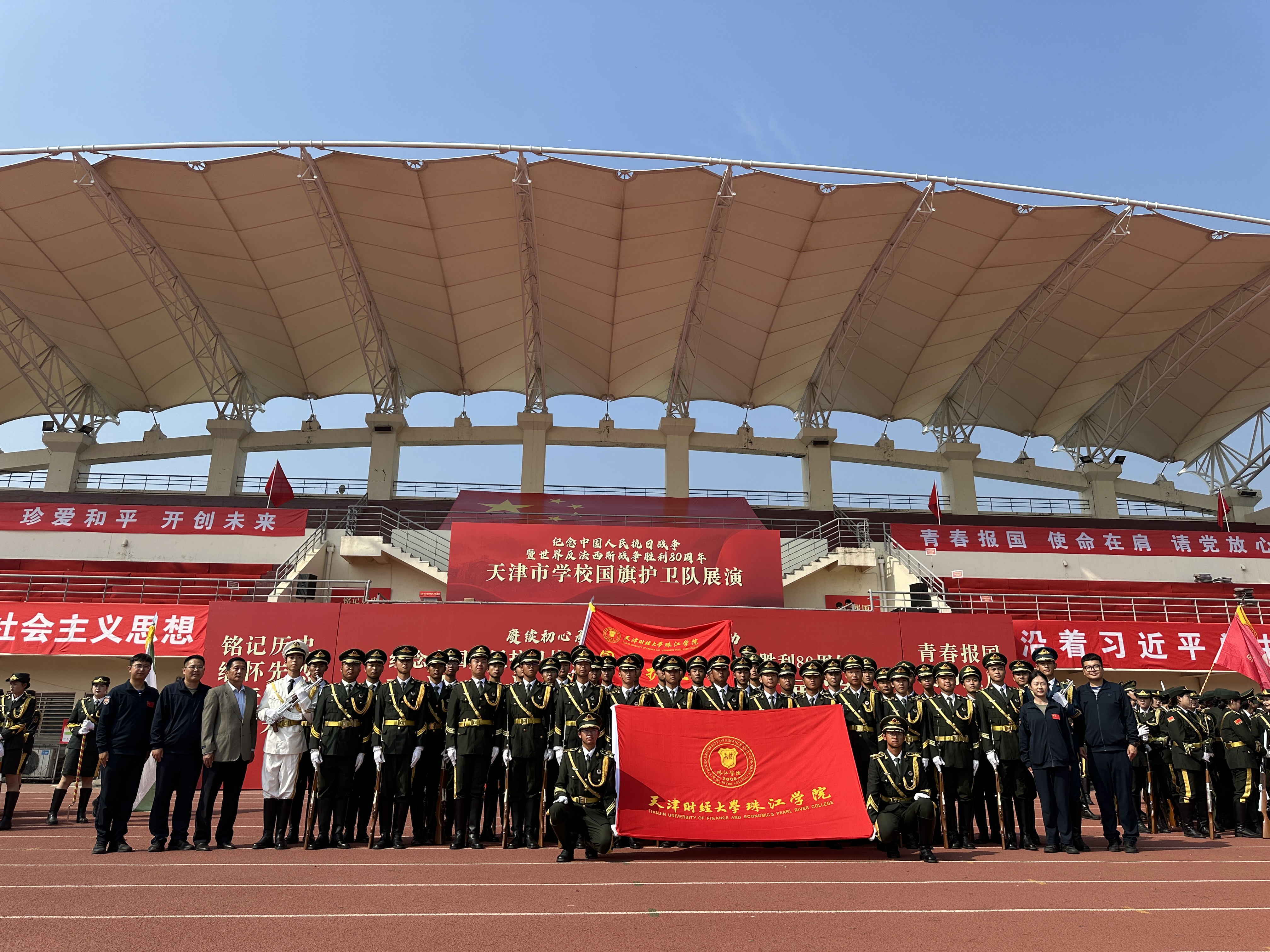 12月22日,中共天津市教育工作委员会、天津市教育委员会、中共天津市委宣传部、天津警备区战备建设局、天津警备区动员局下发了《关于公布“赓续初心承薪火 青春报国建新功”纪念中国人民抗日战争暨世界反法西斯战争胜利80周年天津市第四届学校国旗护卫队展演比赛结果的通知》,我院国旗护卫队荣获一等奖。