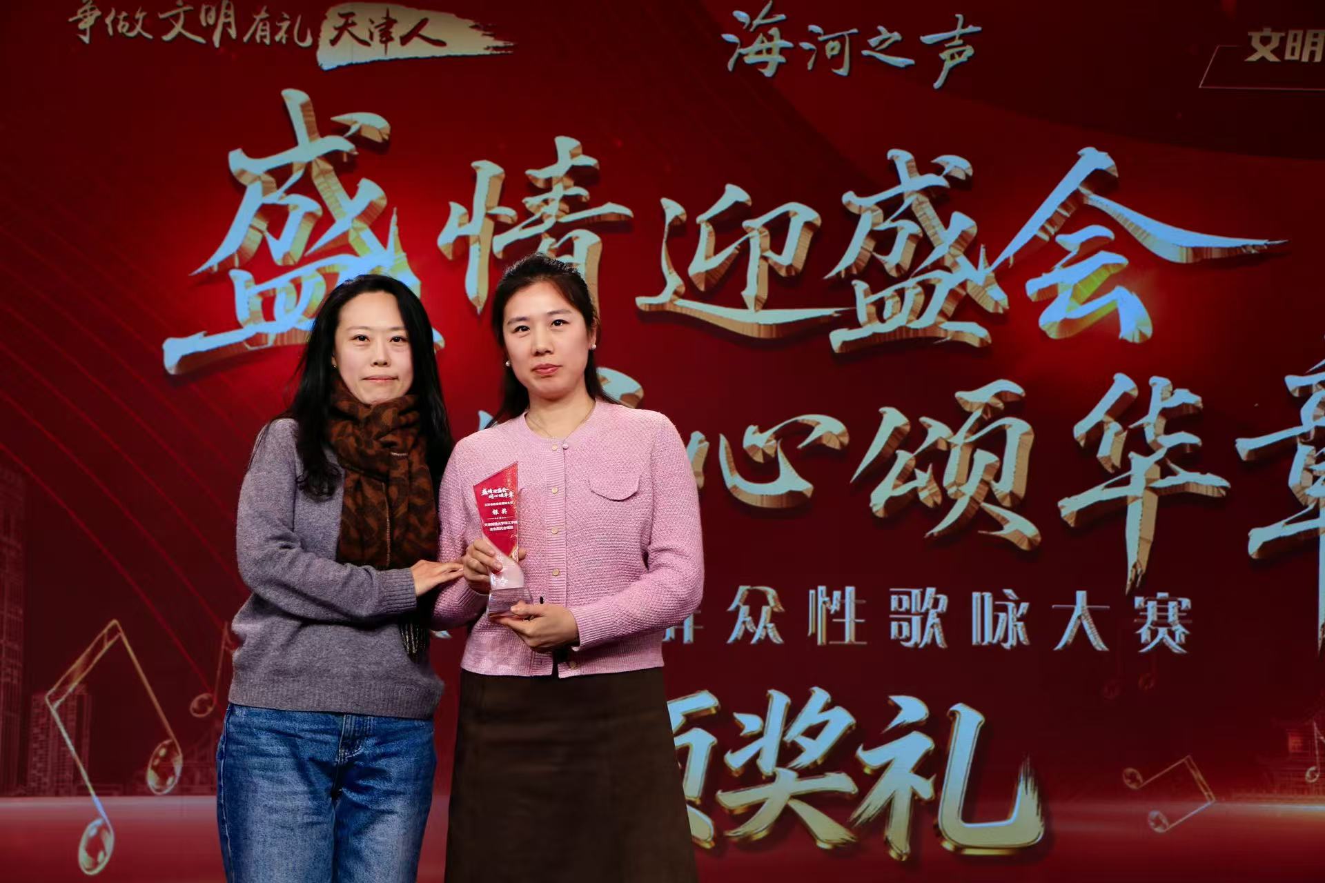 近日,由市委宣传部、市文明办、市委市级机关工委、市委教育工委、市教委等单位联合主办的“盛情迎盛会 同心颂华章”2025年天津市群众性歌咏大赛在天津电视台演播厅圆满落下帷幕。学院金色阳光合唱团以卓越的演唱及艺术表现,获得赛事银奖。