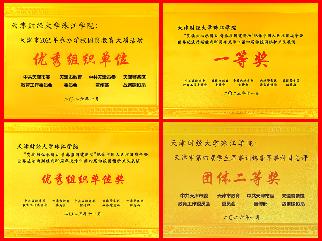 2025年,我院深耕国防教育工作,一方面积极投身天津市各项大型国防教育主题活动,另一方面以全民国防宣传月、新生军训、国家法定节假日等关键时间节点为抓手,策划组织开展主题升旗仪式、国防知识竞答与辩论赛、“行走的思政课”、红色微舞台剧表演等一系列特色活动,全年累计吸引3.6万人次师生参与。我院充分发挥学生教导队专业优势,承训全国军事训练营天津代表队集训,助力队伍再创佳绩;深化校地协同联动,多项国防教育成果获主流媒体关注报道;在天津市大中小学“爱我国防”演讲比赛、天津市学校国旗护卫队展演、天津市高校军事理论教学能力大赛、天津市学生军事训练营等多项赛事中崭露头角、载誉而归。这些扎实有效的实践举措,不仅筑牢了师生国防观念和爱国强军根基,更以校地协同的创新模式为区域国防教育高质量发展提供了鲜活范例,为厚植全民国防情怀、培育新时代国防后备力量贡献珠江力量。