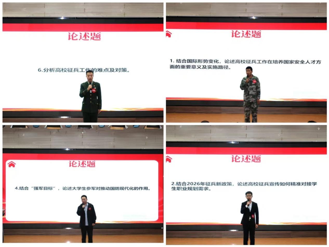 4月7日中午,武装部精心策划的征兵知识笔试学生专场和辅导员专场分别在日新207、日新208教室同步展开。此次测试旨在通过全面而细致的试卷设计,围绕征兵报名条件、体检标准、优待政策等核心要点,检验师生对征兵政策的掌握程度,进一步夯实国防教育基础。