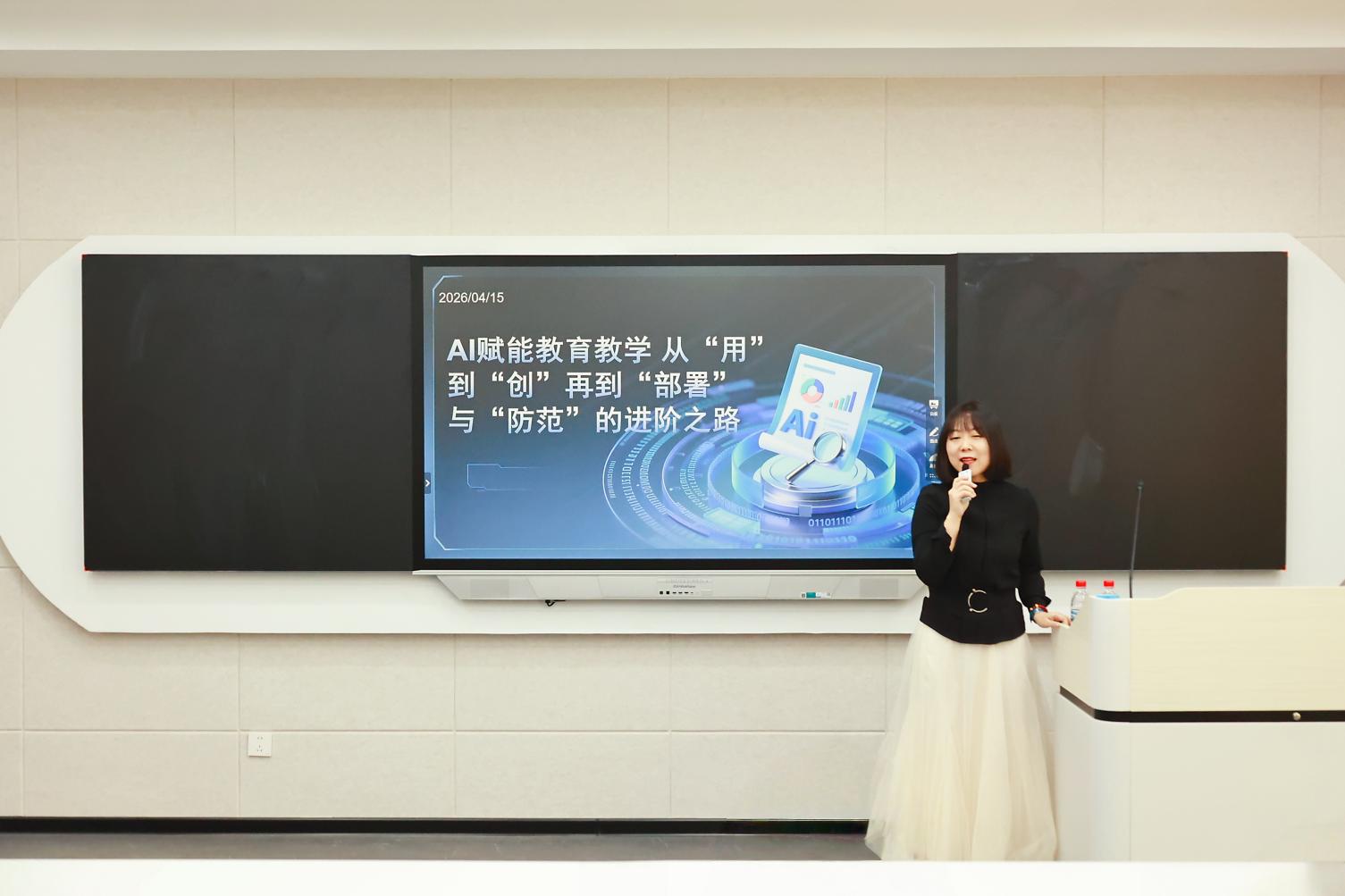 AI技能训练营特邀校内一线教师担纲主讲,培训内容聚焦教师日常教学中的实际需求,精准贴合一线教师工作场景,主讲教师将AI技术融入课件制作、学情分析、课堂互动等方面的真实案例娓娓道来,内容干货满满。这种“身边人讲身边事”的方式,让前沿技术落地为可复制的教学工具,针对性与操作性极强,真正打通AI赋能教育教学的“最后一公里”。未来,教师教学发展中心将继续深耕此类贴近教学实际的系列培训活动,不断推动人工智能技术与教育教学的深度融合,助力教师在数字化浪潮中破浪前行。