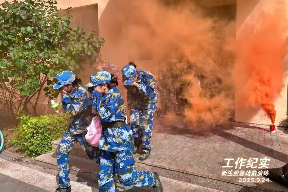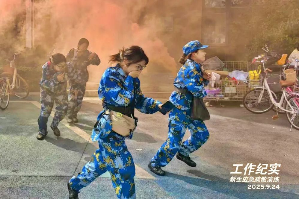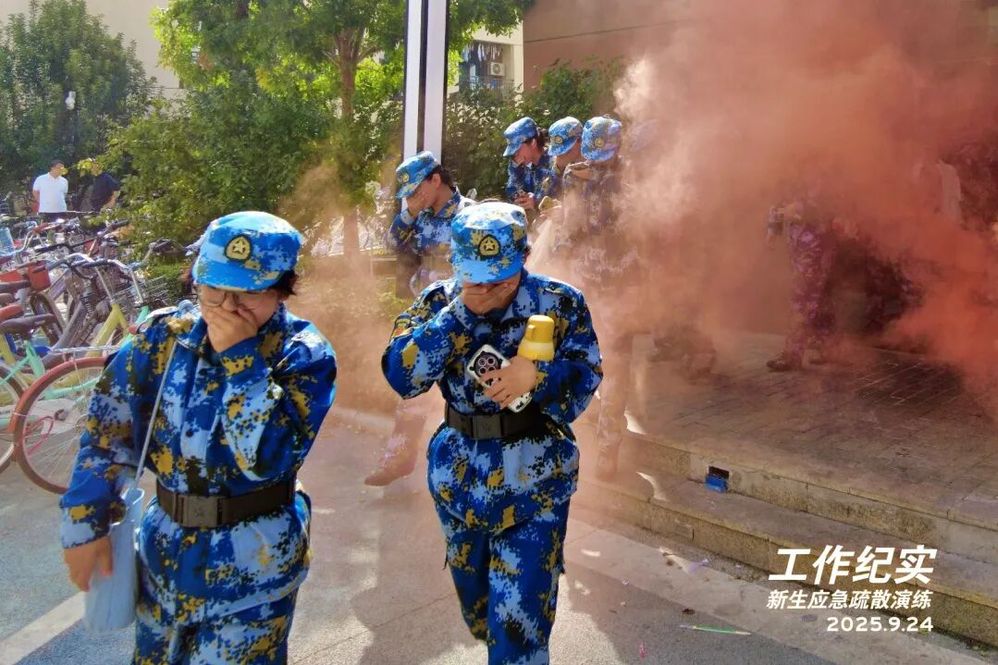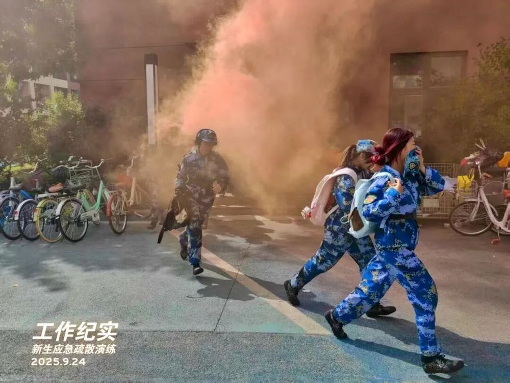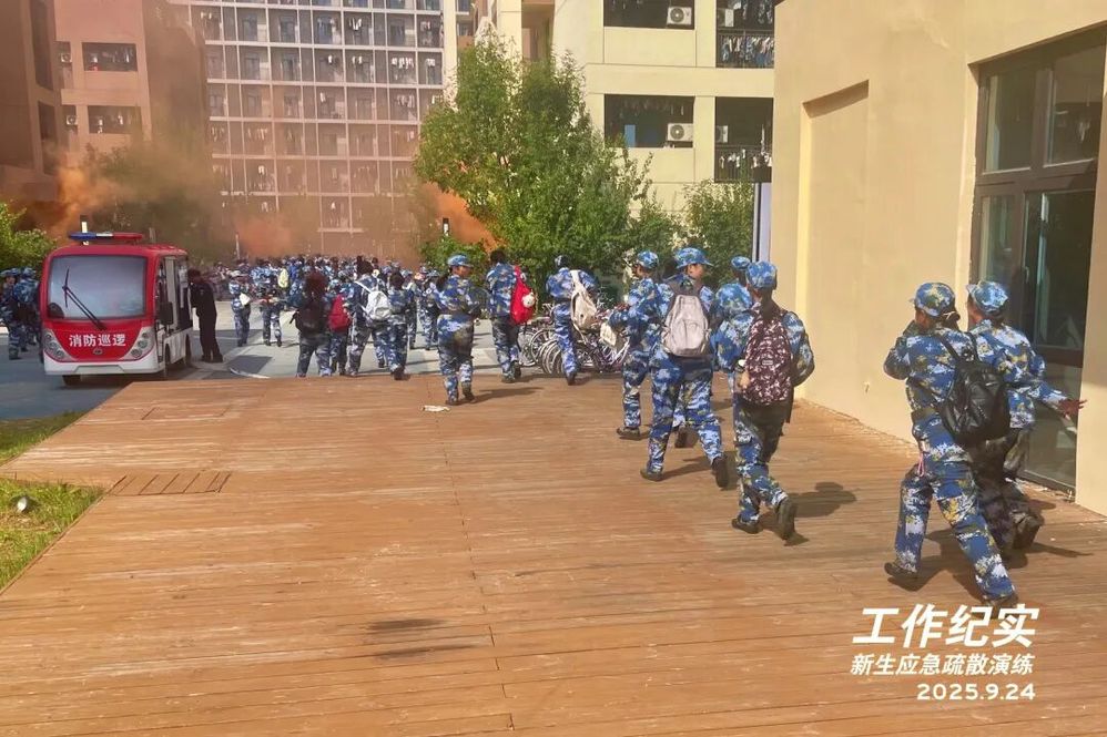 9月24日下午1点20分,为提升2025级新生应急处置能力,推进安全教育和校园生活深度融合,学院安全部联合学生工作部、武装部面向全体新生开展了一场安全有序的应急疏散演练。