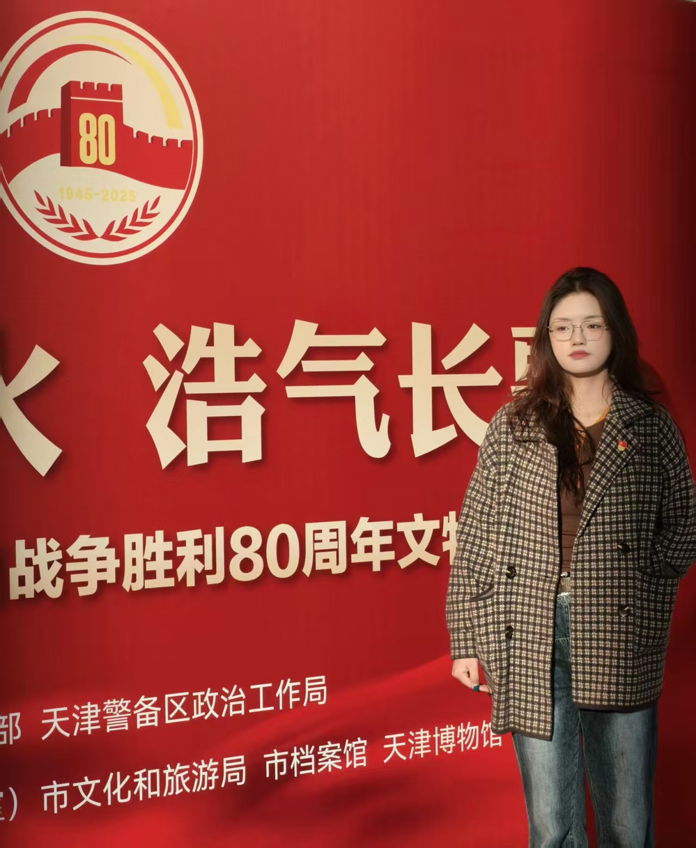今天,作为管理学院工商学生党支部的一员,我们前往天津博物馆外出参观,参观了抗日战争胜利八十周年展,此次参观让我接受了一次深刻的精神洗礼。此次学习让我深刻认识到,党员的身份不仅是荣誉,更是责任。未来,我将把抗战精神融入学习生活中,坚定理想信念,练就过硬本领,在专业学习中勇攀高峰,在志愿服务中践行初心,为国家发展、民族复兴贡献自己的全部力量。