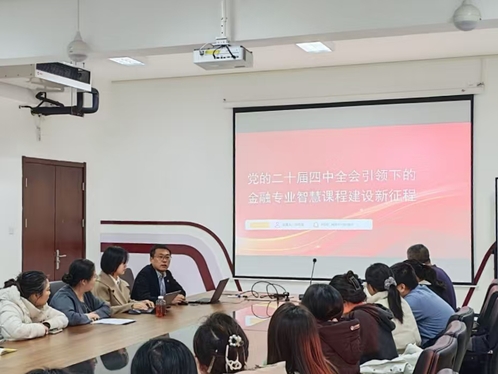 天津财经大学金融学院金融系教师党支部书记郭德友围绕“党的二十届四中全会引领下的金融专业智慧课程建设新征程”作专题报告。首先,郭德友书记深入解读了党的二十届四中全会精神中与教育、金融领域紧密相关的核心要点:一是围绕“建设制造强国、质量强国”目标,理解金融服务实体经济的根本定位、深化金融改革的内在要求与防控金融风险的底线任务;二是聚焦教育“培养什么人、怎样培养人、为谁培养人”这一根本问题,强调必须创新人才培养模式,积极探索新路径,致力于培养能够担当民族复兴大任的时代新人。其次,报告深入剖析了当前金融专业教育面临的三大挑战:课程内容更新滞后于行业发展、教学方法传统单一、科技与教学融合度不足。针对这些问题,金融系通过建设“教学智能体平台”、开发“数字化存档系统”等创新实践,初步构建了支撑教学分析与决策的专题数据库。