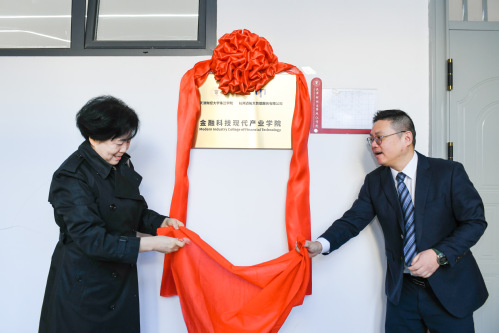 在论坛开幕前,天津财经大学珠江学院院长任碧云教授与杭州迈拓大数据服务有限公司创始人季山博士共同为“金融科技现代产业学院”揭牌。