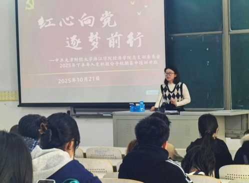 为深入推进入党积极分子思想政治教育,助力青年学子系统学习党的创新理论、铭记党的奋斗历程、坚定理想信念,天津财经大学珠江学院经济学院2025年下半年入党积极分子短期集中培训于2025年10月21日-2025年10月24日完成。