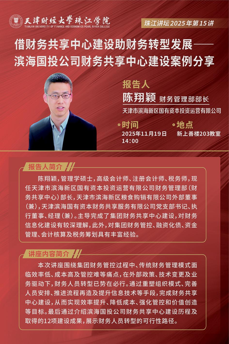 珠江讲坛预告|借财务共享中心建设助财务转型发展——滨海国投公司财务共享中心建设案例分享