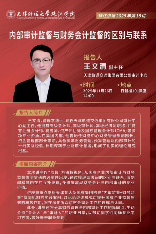 珠江讲坛预告|内部审计监督与财务会计监督的区别与联系