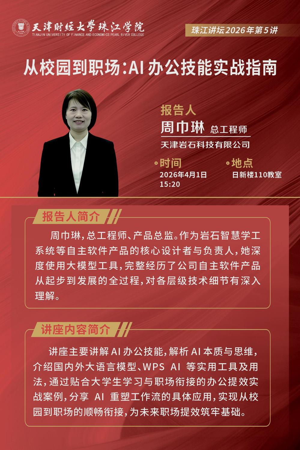 珠江讲坛预告|从校园到职场:AI办公技能实战指南