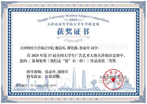 11月3日,第十六届全国大学生广告艺术大赛(以下简称“大广赛”)全国总评审结果正式揭晓。天津财经大学珠江学院学子凭借扎实的专业功底、独特的创意构思和出色的实践表现,从全国众多参赛作品中脱颖而出,荣获国家级、省级奖项总计30项,其中国家级奖项5项(含二等奖1项、三等奖2项、优秀奖2项),省级奖项25项(含二等奖1项、三等奖1项、优秀奖23项),在获奖数量、含金量都有极大进步,充分展现了学院在广告艺术教育领域的卓越成果。