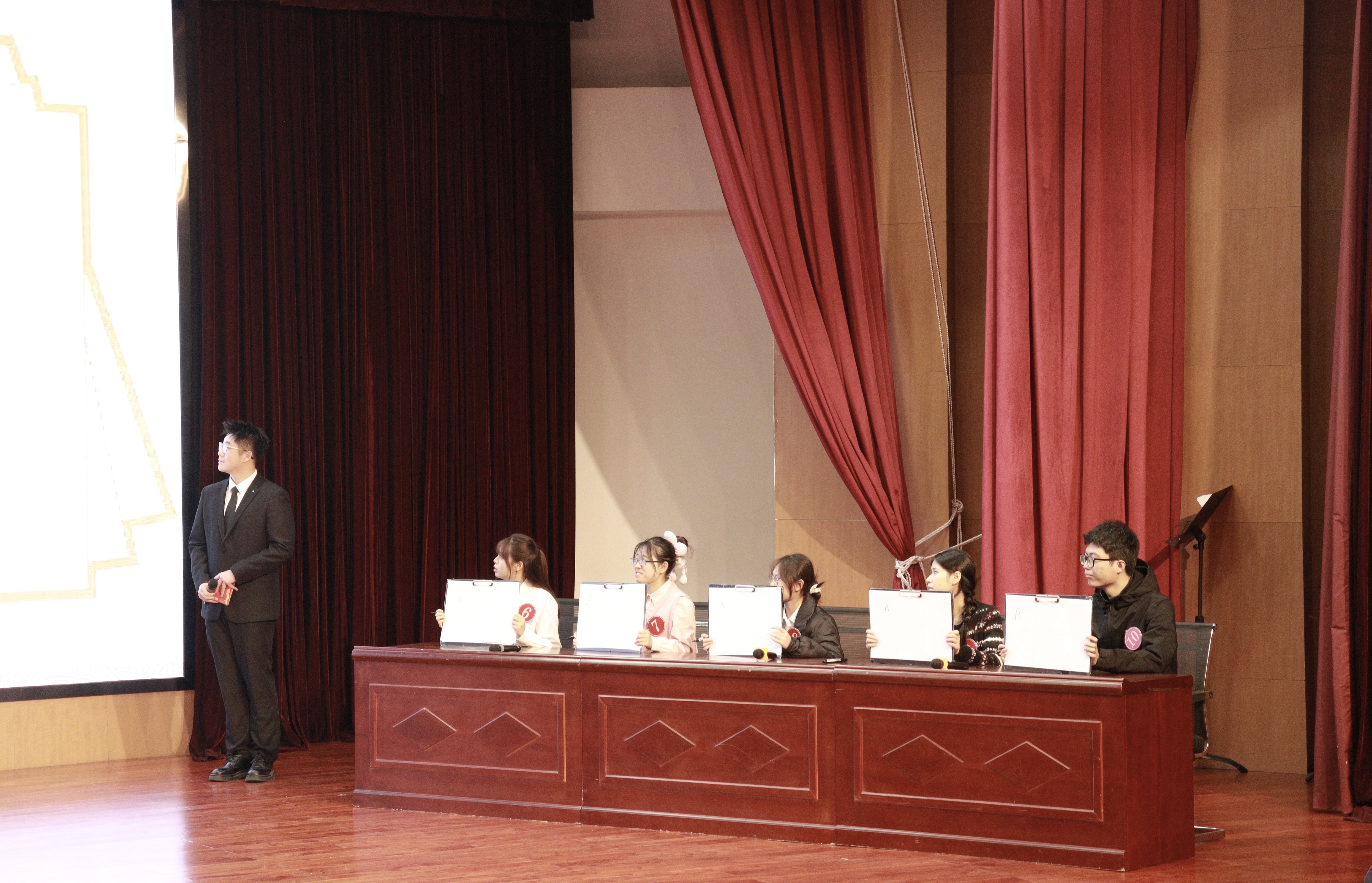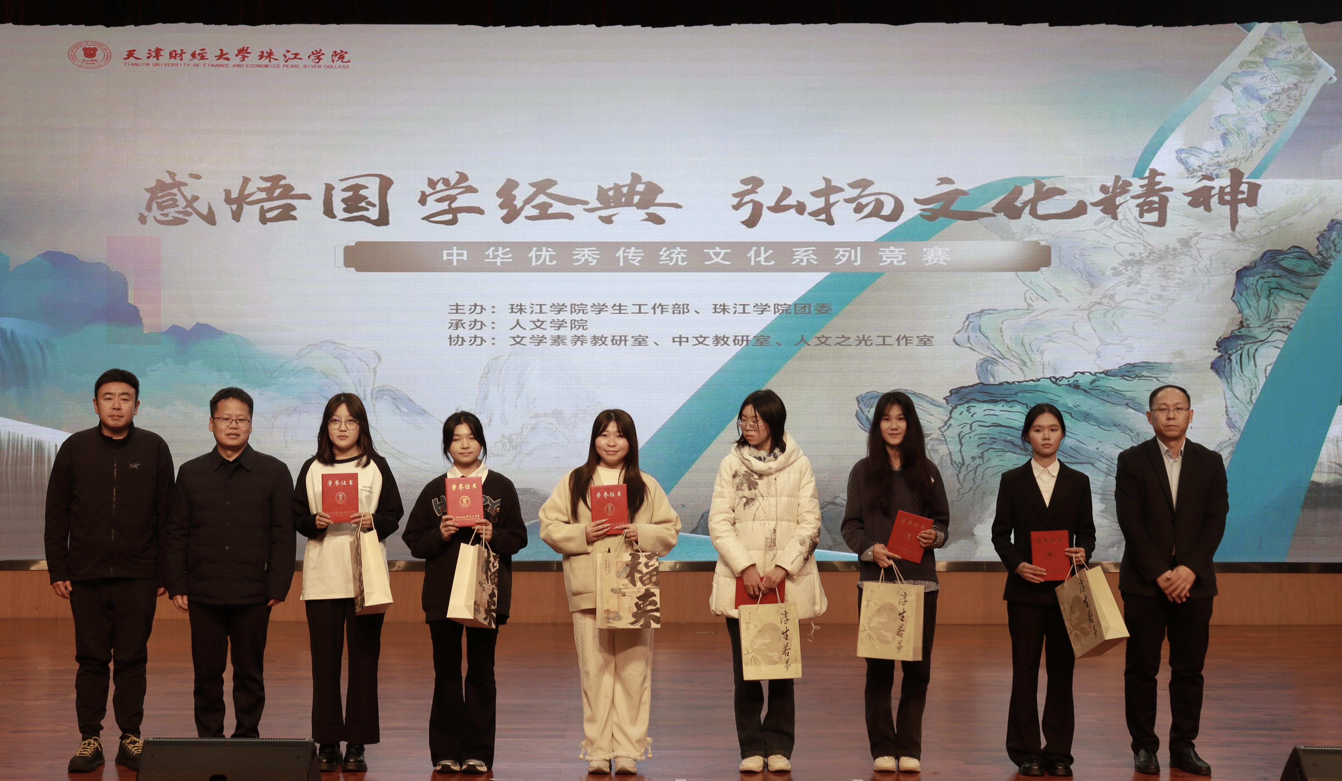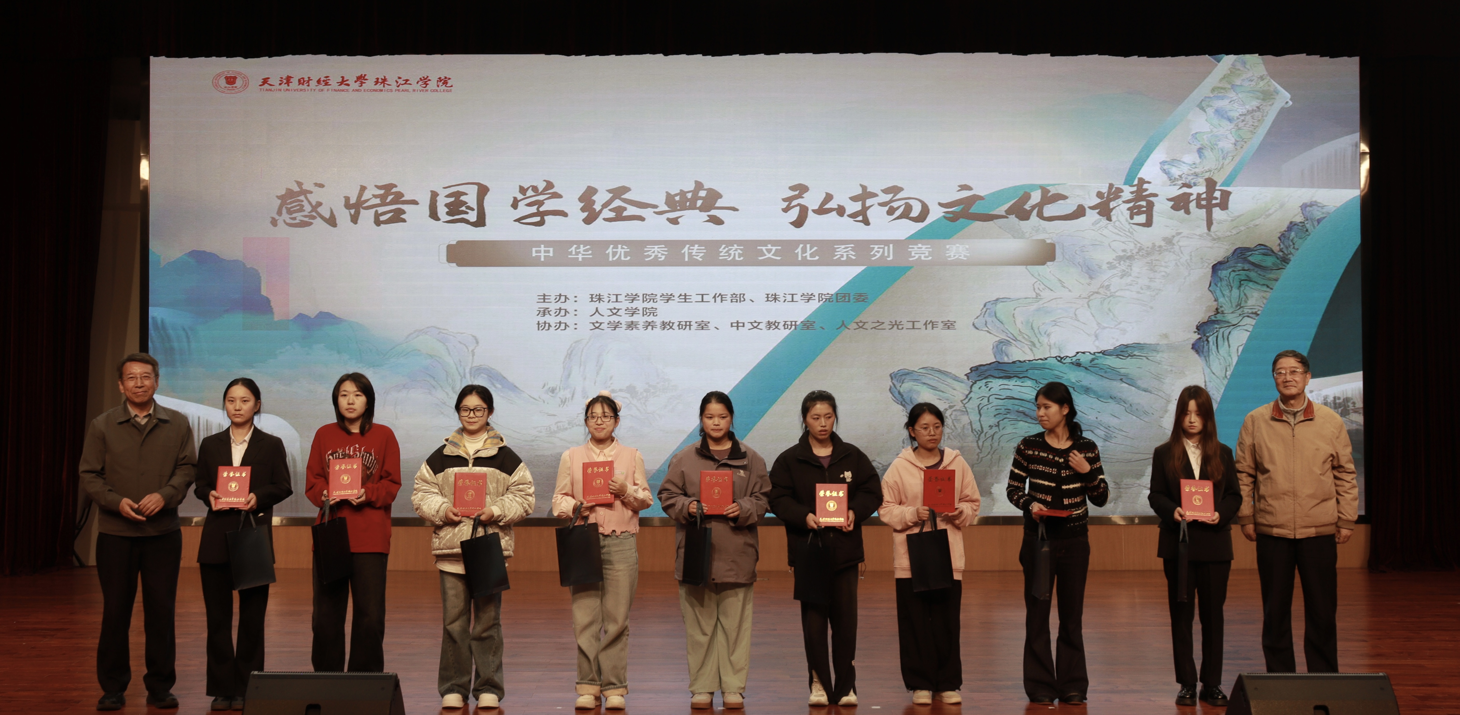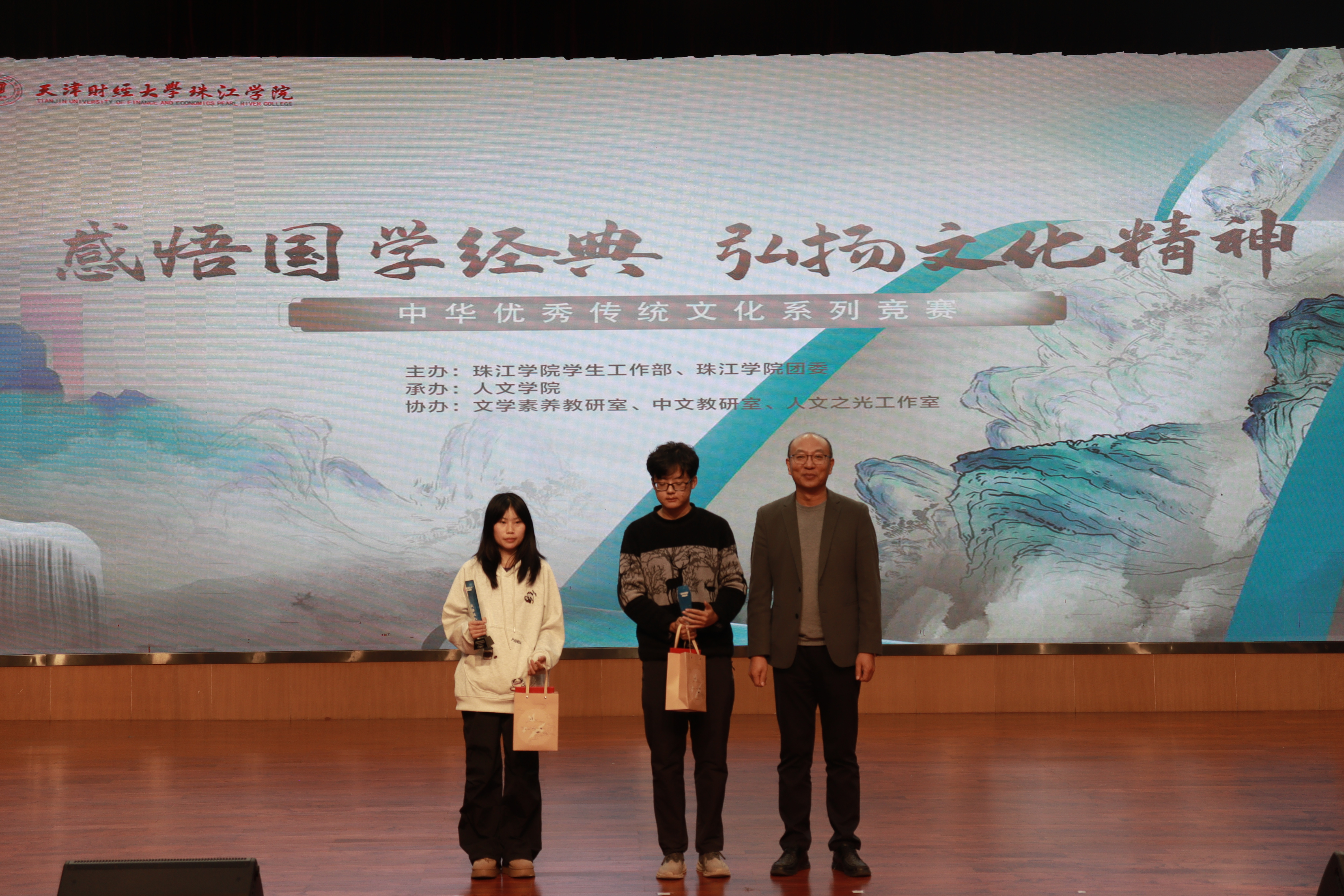 为深入贯彻落实文化传承发展相关重要指示精神,在校园文化建设中厚植中华优秀传统文化根基,学院于11月12日在中和楼报告厅举办“感悟国学经典 弘扬文化精神”2025年中华优秀传统文化系列竞赛决赛,出席本次活动的领导有珠江学院党委书记梁海龙、珠江学院副院长杜展鹏、珠江学院党委副书记、纪委书记白晓、党委宣传部部长熊泽宇、图书馆馆长鲍晓悦、教务部副部长张秋慧、管理学院院长张英华、人文学院院长崔际银以及800余名师生代表共同见证了这场文化盛宴。