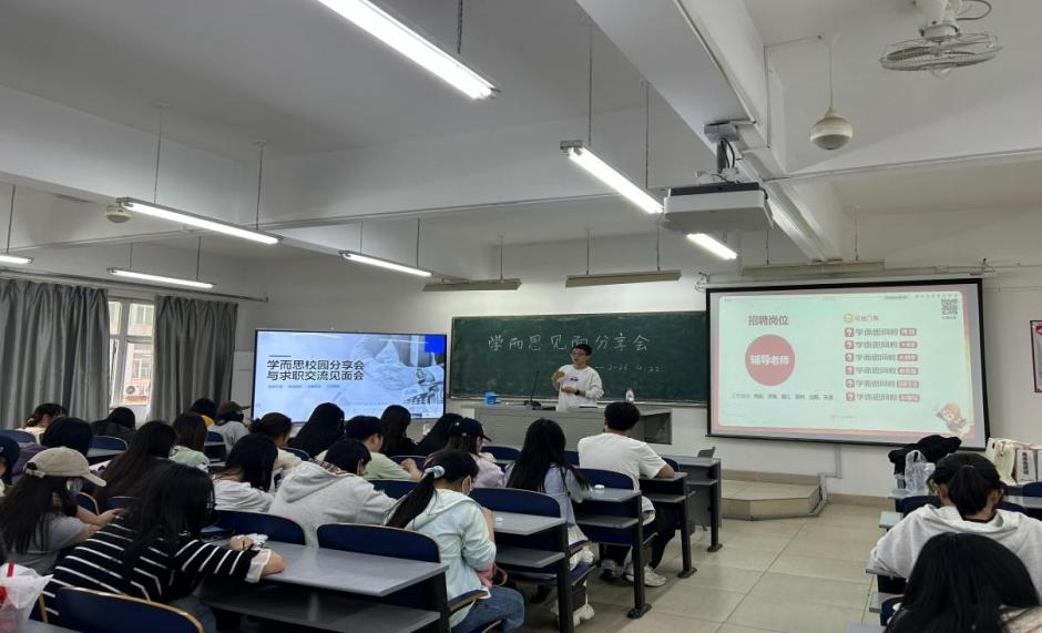活动伊始,主持人热情开场,对到场学子表示热烈欢迎,清晰介绍本次见面会整体流程、以及本次求职交流活动的核心意义,让同学们快速了解活动核心内容。随后进入学而思专项分享环节,马老师围绕品牌教学理念、完整岗位体系、行业发展前景等核心内容展开细致讲解,全方位展现学而思的育人初心与人才培养规划,帮助学生打破对教培行业岗位的认知壁垒。