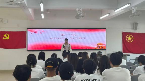 在青年代表发言环节,三位党员代表结合自身实际,畅谈历史感悟与时代责任。胡可表示:“历史的苦难铸就了今天的中国。我们从破碎山河走向钢铁长城,这是一条无数先烈用生命铺就的道路。我们新时代青年更应立志成为有理想、敢担当、能吃苦、肯奋斗的接班人。”张婧卓谈到:“历史虽远去,但其启迪永存。我们应珍惜当下,刻苦学习,以实际行动书写祖国未来的华章。”韩雨萌结合国庆阅兵的震撼场景,呼吁大家发挥模范作用,传播正能量,树立正确的历史观和价值观。