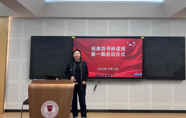 为深化学院“1+6+3”人才培养体系,培养学生跨学科思维、提升学生文化底蕴和思辨能力,图书馆于10月16日在日新楼206室举办经典百书研读班第一期启动仪式。图书馆馆长鲍晓悦、副馆长陈隽宜、图书馆各部门辅导老师及研读班第一期报名学生59人出席并参与了此次活动。