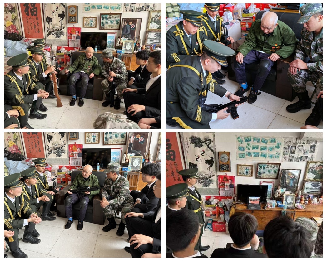 高永太1927年生,1947年入伍,1947年入党,参加过辽沈战役、平津战役、渡江战役和抗美援朝战争。队员们首先听取了村委会支部书记李印亮和高永太孙子高为宁对老人基本情况的介绍,并自发为其打扫屋子及院落。随后,队员们围坐在革命老兵的身边,聆听老人讲述战争年代敢于战斗不怕牺牲的故事,共同回忆往昔峥嵘岁月,思忆战友时老人流下了真情的眼泪。听完老兵的讲述,队员们为革命老兵展示我院学生教导队的日常训练装备、训练科目,陪同老人观看学生教导队训练和军训成果视频,展现了珠江学子朝气蓬勃的青春风采。老人感慨地说:“感谢同学们来看我,我岁数大了,好多事情记不清楚了,但是请你们相信,我的革命信仰永不变!你们一定要珍惜今天的幸福生活,立志将来为国家多做贡献。”