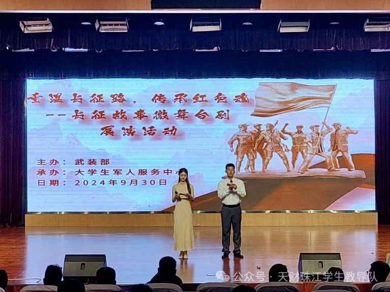 为传承长征精神,激发学生爱国热情和民族自豪感,武装部大学生军人服务中心于2024年9月30日,在学院中和楼报告厅开展“重温长征路,传承红色魂”长征故事微舞台展演活动。