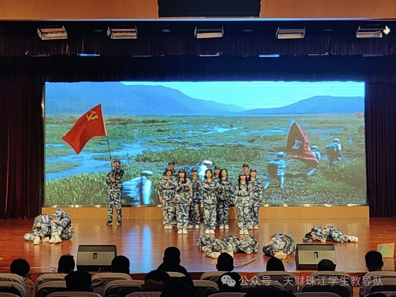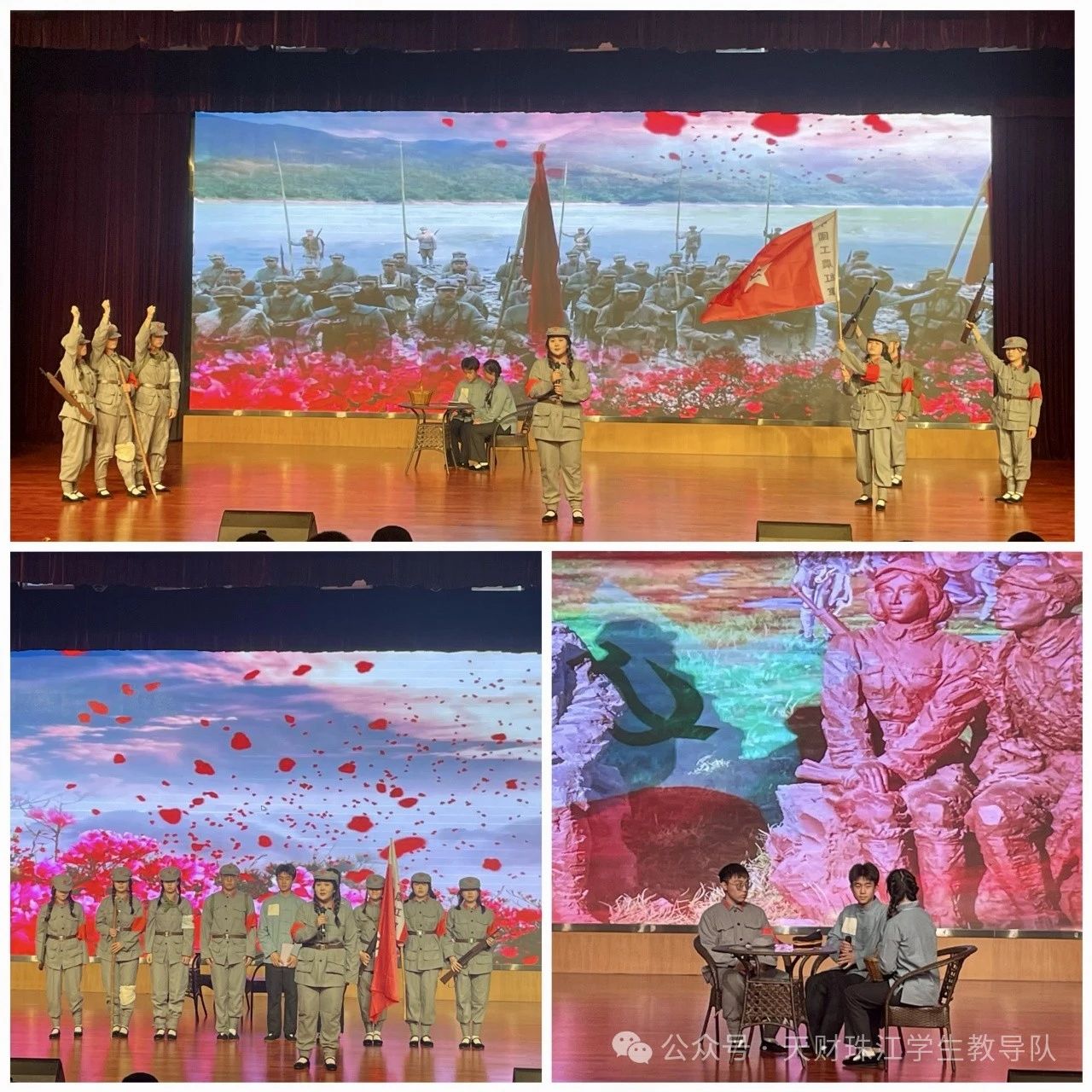 从长征的体悟中走出,各学院带来了精彩的表演,经济学院带来的《金色的鱼钩》把老班长的伟大奉献精神,深深地镌刻在了每一个观众的心中。管理学院的《一条皮带》的故事,让我们感悟到红四方面军三入草地艰苦卓绝,如同岁月长河中的一颗明珠,永远地留在后世的回忆之中。人文学院的表演热情且高昂,团队紧密合作,一动一行中,把《没有共产党就没有新中国》的豪迈之情,在红旗挥舞飘扬中热切洋溢,那热烈的爱国情怀,深深具化在洋洋洒洒红色旗帜上。
