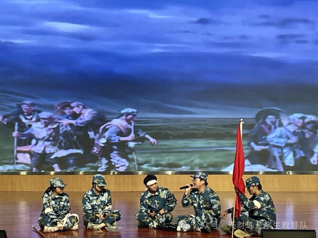 随后,大学生军人服务中心带来了舞台剧《映山红》,高亢的乐歌,一字一句中尽显家国情怀中的红色敬仰。舞台上,那一抹抹鲜艳的红色仿佛是革命的火焰在熊熊燃烧。演员们用饱含深情的表演,将观众们再次带回到了那段披荆斩棘的历史长河。他们的故事,是长征岁月中无数家庭的缩影,他们用爱与坚守,铸就了那段波澜壮阔的传奇。