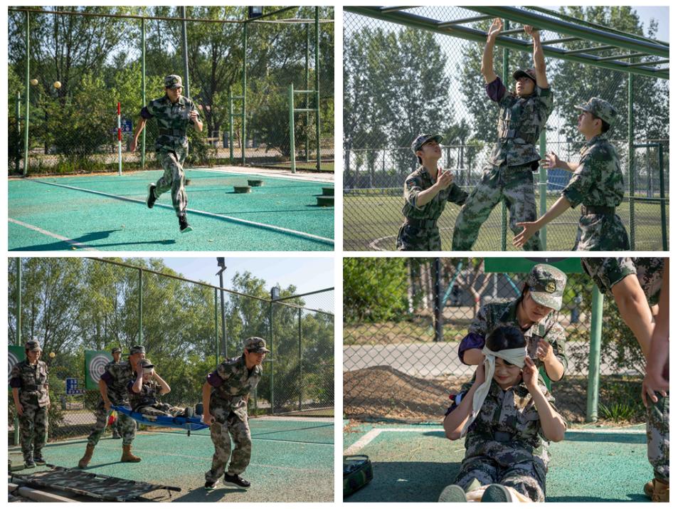 本次比武紧贴野外实战要求,科学设置多项砺刃科目。“战术障碍+战伤救护”综合演练比武科目考察参赛队员模拟战场下的生存本领;“防毒面具穿戴+穿越染毒地带”争分夺秒比武科目考核参赛队员模拟核战情形下的生化防护能力;“战斗行军+野战炊事”隐蔽行动比武科目检验参赛队员的野外生活保障能力;“丛林攻防战”战术战法比武科目检查参赛队员军训战术训练科目掌握情况。赛场上,各参赛分队奋勇争先,将军事理论精髓与实战技能紧密融合,在硝烟弥漫的模拟环境中,全方位检验了战场应变、单兵防护、野外生存、团队协同与战术对抗能力,生动展现了新时代青年学子过硬的军事素养、钢铁般的战斗意志和昂扬向上的精神风貌!