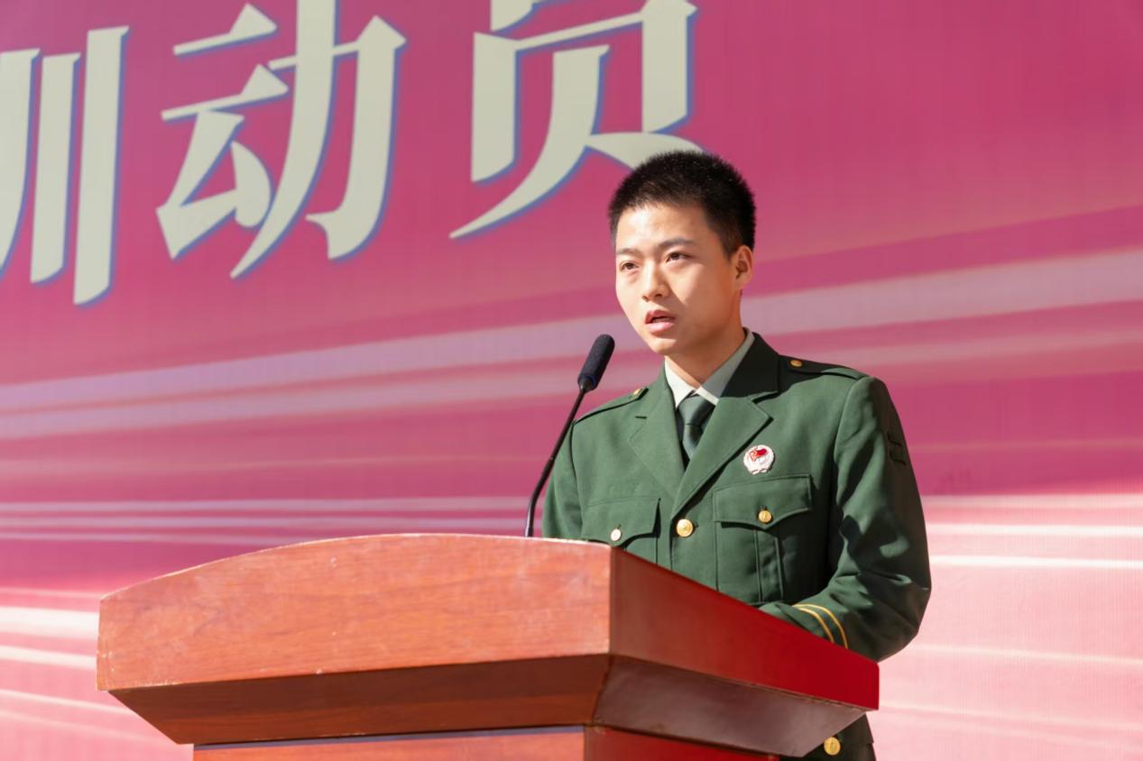 学院武装部部长吴亚娟发表讲话。他以“九一八”事变为历史原点,深情回溯那段刻骨铭心的民族苦难,深刻阐释新时代加强国防建设的重大意义,殷切寄语青年学子勇担国防责任与时代使命。真挚的话语,引发全场强烈共鸣。
