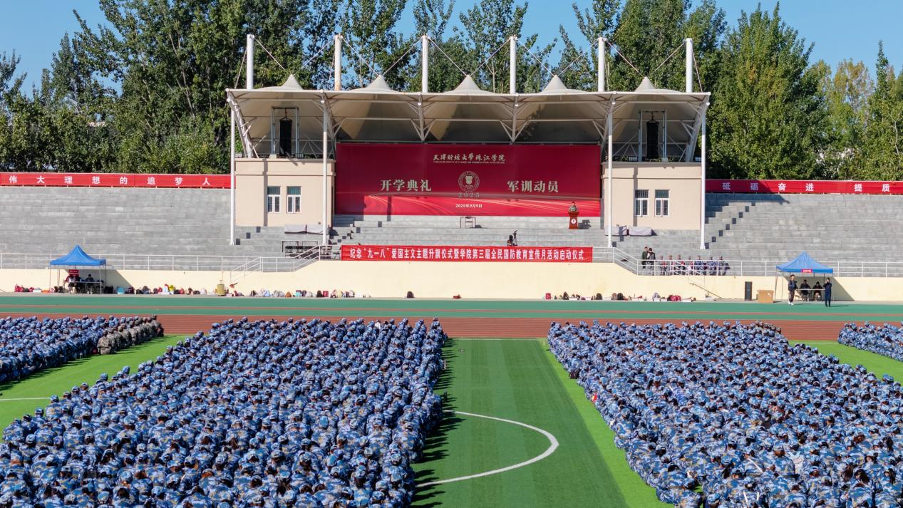 9月18日清晨,旭日初升,微风轻拂。天津财经大学珠江学院2025年军训团全体师生齐聚操场,在庄严肃穆的纪念“九一八”爱国主义主题升旗仪式中,隆重启动学院第三届全民国防教育宣传月活动。大家共同回望烽火岁月,致敬不朽英魂,让炽热的爱国情怀在胸中澎湃激荡。
