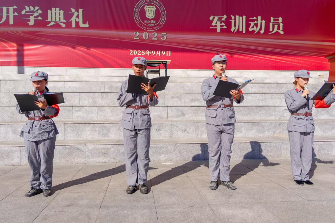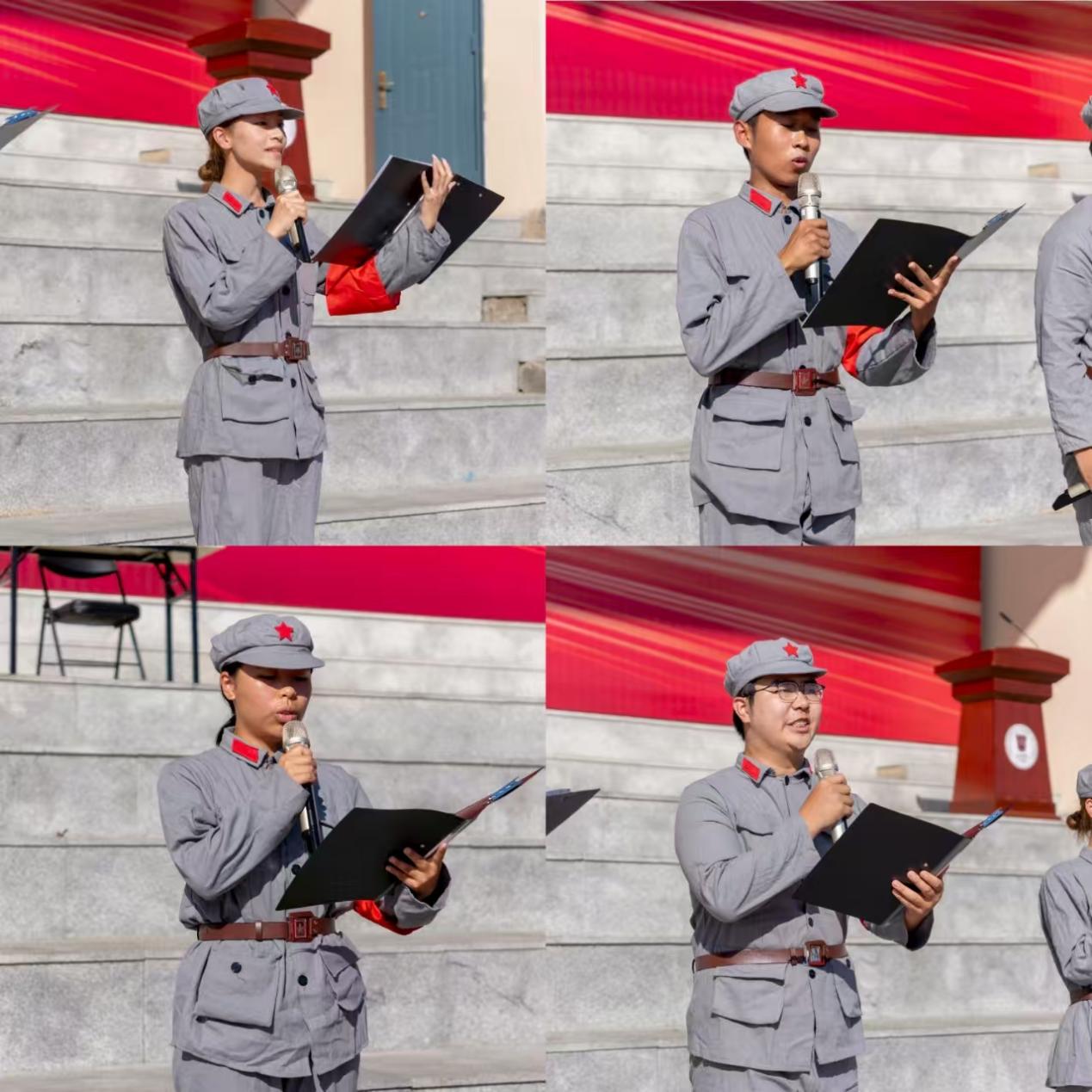 来自会计学院会计2503班宋丽、会计2512班罗樊舜扬、数据工程学院计科2503班高远、经济学院金融2504班万柯彤四位学生代表,带来激情澎湃的诗朗诵。他们精神饱满,声情并茂——时而激昂高亢,再现先烈浴血抗争的壮怀激烈;时而深情款款,诉说当代青年“以青春许国、以奋斗践诺”的铮铮誓言。“八十年回望,战火岁月铸造民族脊梁;十四载奋进,生命丰碑屹立民族之巅”的吟诵掷地有声,“请党放心,强国有我”的信念在每个人心中激荡回响。