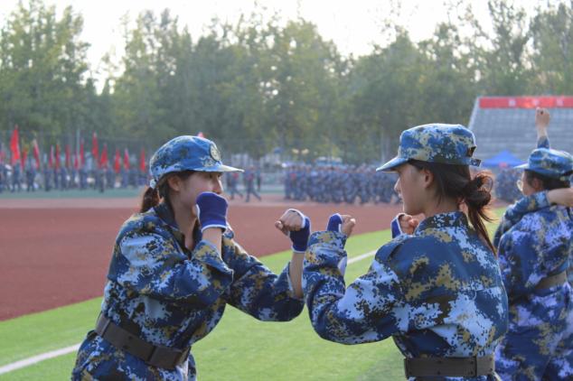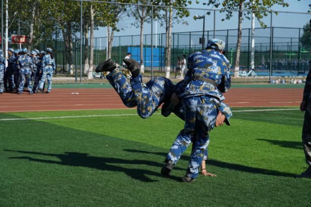 训练场上的风,都裹着凛冽的锐气。刺杀操出枪的瞬间,枪尖划破空气的锐响格外清亮,突刺时手臂绷成笔直的线,力道直透枪尖;格挡时动作干脆利落,枪身与虚拟目标的“碰撞感”仿佛穿透视线。同学们双脚扎稳马步,握枪的虎口泛着红,每一次转体、出枪都精准如标尺,没有半分迟疑。一令一动间,全班动作齐整得像复刻,呼号声与出枪声交织,把“一往无前”的劲,刻进每一个绷直的脊背里。
