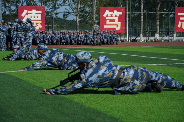 “硝烟”起时,战术方阵瞬间“动”了起来。低姿匍匐时,手肘贴地快进,不沾多余的尘土;交替掩护时,眼神扫过队友,一个手势便懂配合;模拟冲锋时,步伐疾而不乱,动作准而不慌。没有真的战场,却有真的专注——少年们眼观六路、耳听八方,把“迎难而上”“敢担当”,融进了每一次俯身、每一次跃进里。