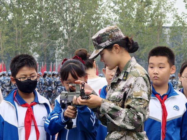 教官手持枪械模型,细致拆解讲解构造原理。孩子们看得目不转睛,机关干部们仿佛重温了自己的军训岁月,不同代际的参与者共同感受着军事训练的严肃与规范。