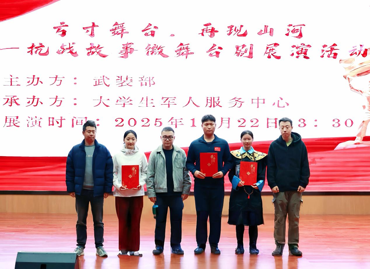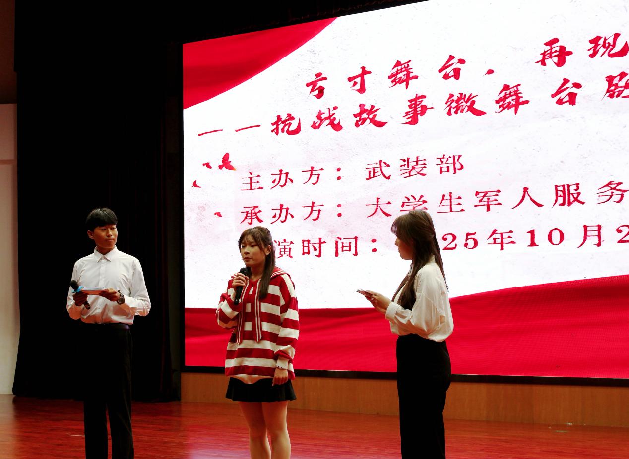 为纪念中国人民抗日战争暨世界反法西斯战争胜利80周年,2025年10月22日,国防教育宣传月之“方寸舞台,再现山河”抗战故事微舞台剧展演活动在我院中和楼报告厅隆重举行。师生齐聚一堂,在庄严肃穆的氛围中共同追溯抗战岁月,深切感悟革命先辈的英勇精神与深沉的家国情怀。