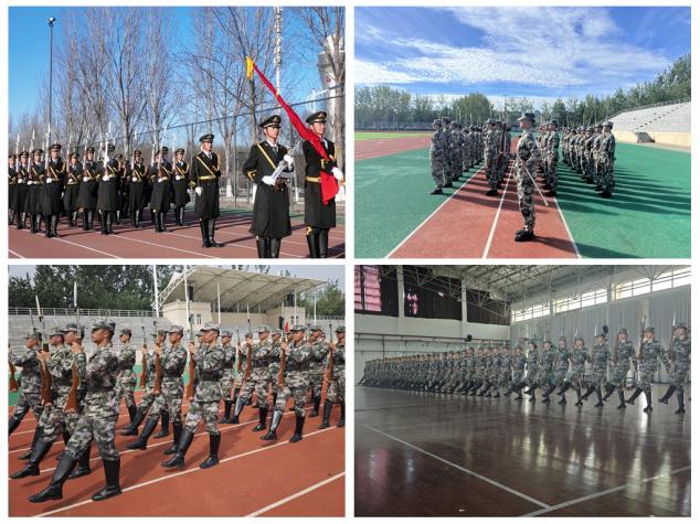天津市学校国旗护卫队展演比赛两年举办一次。学院高度重视该项赛事,武装部3月初提前两个月启动备赛方案,严格选拔队员,制定训练计划,科学开展赛前集训。通过组织学期中常态化早晚训、周末强化训,暑期模拟展演训等模式,不断提升队员的军事素养与整体表现力。决赛前队员们克服炎热酷暑和蚊虫叮咬,顶着烈日当空苦训,冒着纷纷细雨勤练。担任新生军训承训助理教官期间他们利用军训休息间隙,在训练场上反复打磨正步走、齐步走、持枪和队列协同动作。他们自我要求每一个军姿都挺拔傲气,每一个敬礼都整齐有力,每一个正步都铿锵稳健。队员们从没有因为脚上磨出水泡、手上磨出老茧、胳臂被磕出淤青而放弃,正是这种不怕苦不怕累、不卑不亢、昂扬拼搏的精神面貌给决赛现场评委和观众留下了深刻印象,成就了这一荣光时刻。