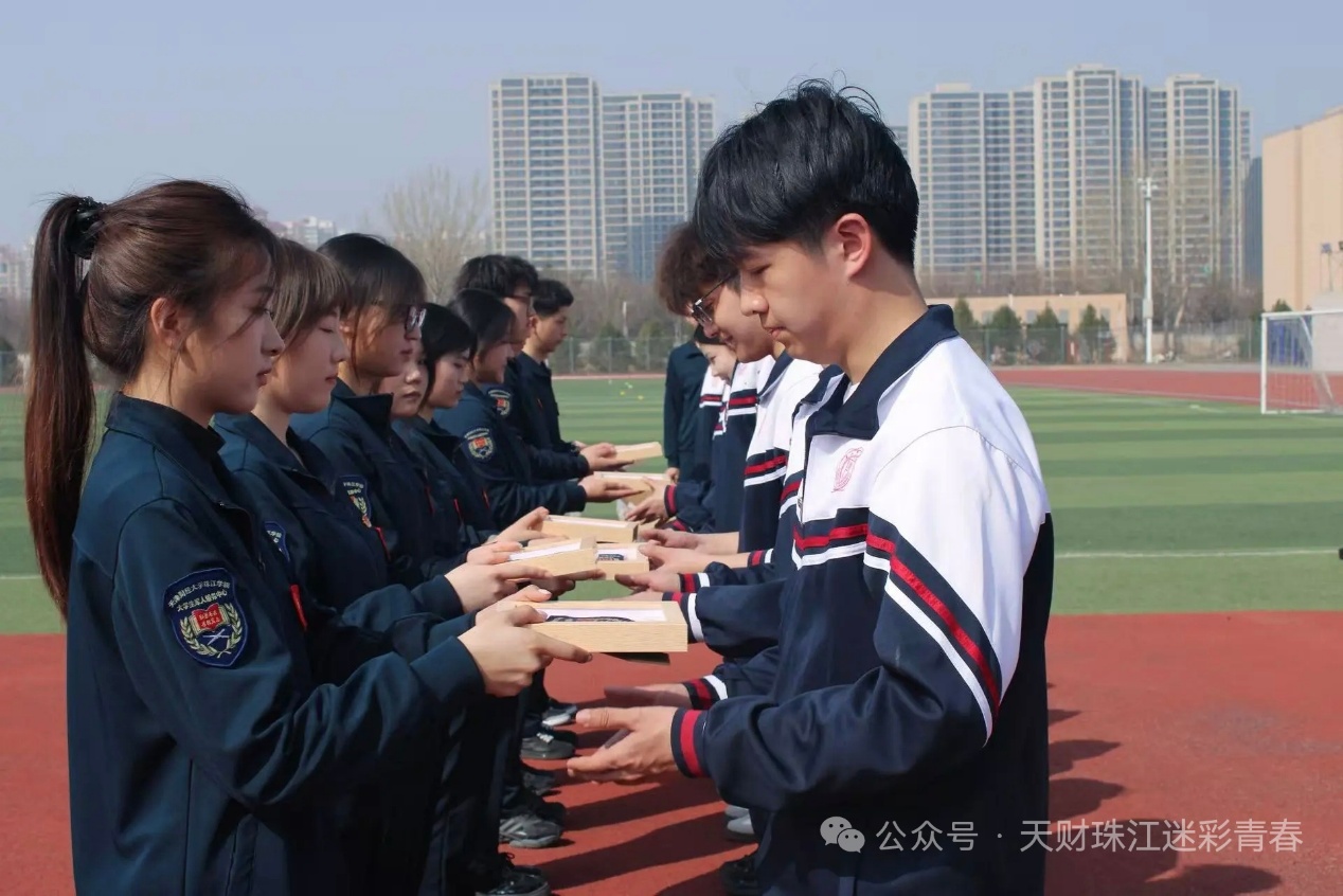 下午2点30分,活动进入总结环节。学生代表分别分享活动感悟,交流学习心得,表达以先烈为榜样、以青春赴使命的坚定信念。在热烈而真挚的氛围中,实践行部分成员向唐山师范学院学生赠送臂章,以物寄情,一枚枚小小的臂章承载着并肩奋斗的珍贵记忆,也象征着我院与唐山师范学院在国防教育道路上结下的深厚情谊。