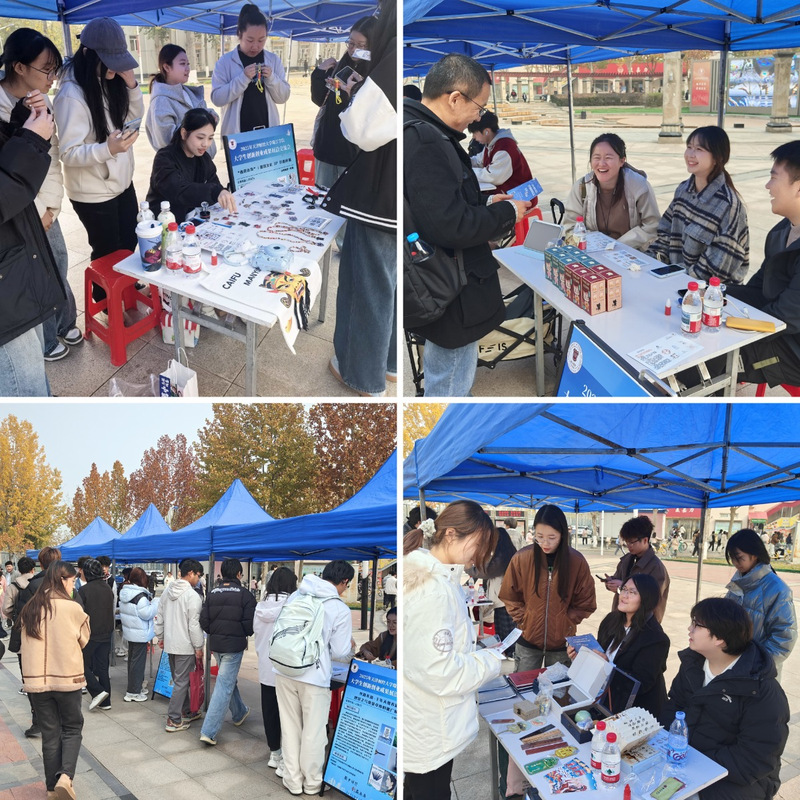 11月5日,学院2025年大学生创新创业成果展洽交流会在文华广场成功举办。本次活动由学生工作部创业指导中心(行知众创空间)承办,共15个大学生创新训练计划项目携成果参展,2000余名师生参加了活动。