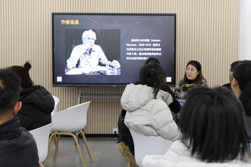 活动伊始,李程霏围绕赫伯特・马尔库塞的著作《单向度的人——发达工业社会意识形态研究》展开深度解读。聚焦核心命题,即为何物质富足、技术先进的社会反而会造成人的精神压抑与思想扁平。随后,她从四个核心维度展开剖析:一是虚假需求与消费主义,指出社会通过媒介制造的虚假需求,正催生大学生 “精致穷”、攀比消费等现象;二是技术理性的桎梏,强调效率至上的思维导致大学生陷入 “绩效化生存”,价值观念向实用主义倾斜;三是文化与思想的封闭化,阐释高雅文化被商业收编后,大学生出现碎片化阅读、浅层化思考等问题;四是语言与思维的单一化,点明网络流行语滥用、信息茧房等现象,正让学生的思维失去批判与反思能力。