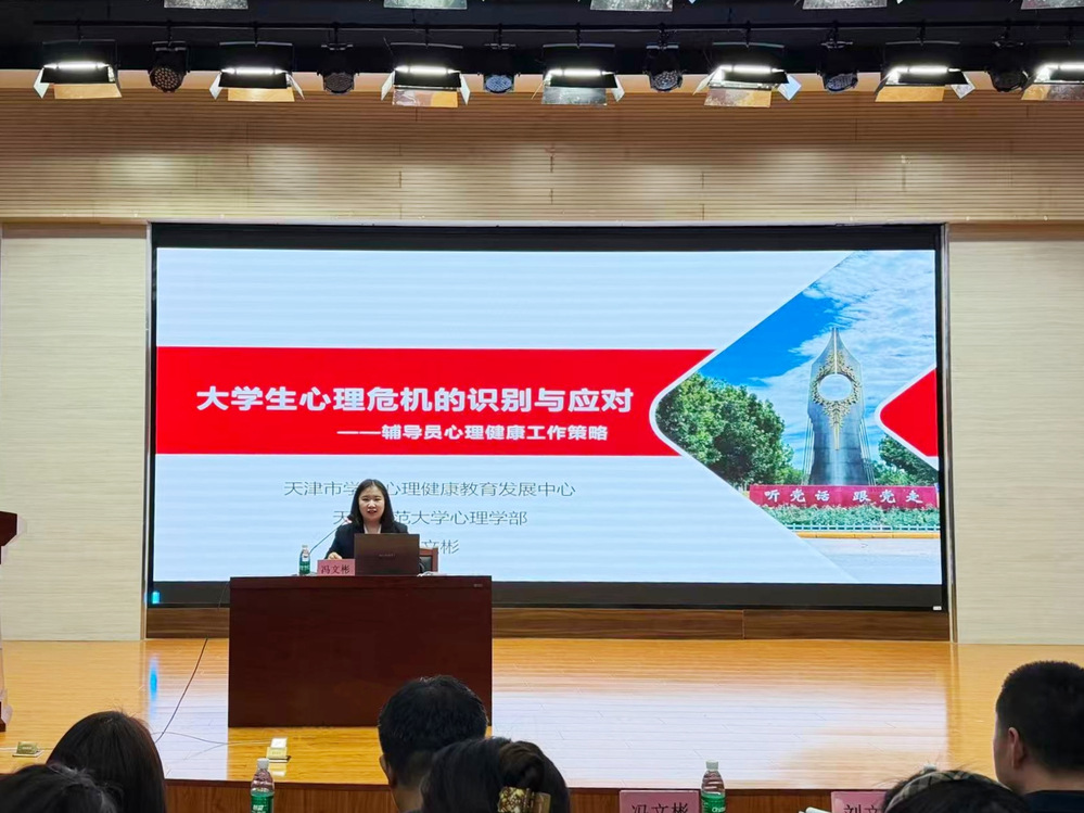 为进一步加强学工系统心理健康教育工作能力建设,提升学生心理危机识别、预警与干预水平,落实“全员育心”工作要求,构建“育心与育德”相统一的心理育人局,3月31日下午,学生处组织开展了“大学生心理危机识别与应对”专题培训会。天津师范大学心理学部、天津市学生心理健康教育发展中心冯文彬博士担任主讲人,院长助理郭鑫主持。学院学生处、团委、心理健康教育中心、各学院学工办、各宿舍园区全体人员参加培训。