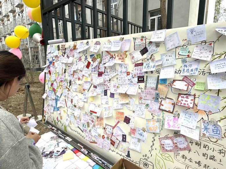 活动现场布置温馨治愈,马卡龙色系气球轻盈点缀,营造出放松舒心的氛围。同学们积极参与,纷纷驻足,拿起彩色便利贴认真书写,或是对大四生活的规划,或是考研上岸的目标,亦或是对未来人生的美好期许,一笔一画都饱含青春向往,成为宿舍园区一道温暖动人的风景线。