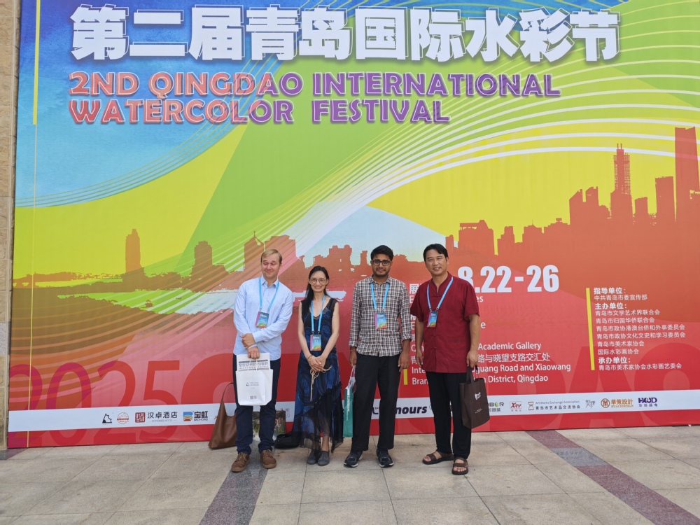 8月22日下午,艺术学院院长滑寒冰作为特邀嘉宾参加第二届青岛国际水彩节。本次活动在青岛画院美术馆举办,以“水色交融·共绘时代”为主题,由中共青岛市委宣传部指导,青岛市文学艺术界联合会、青岛市归国华侨联合会、青岛市政协港澳台侨和外事委员会、青岛市政协文化文史和学习委员会、青岛市美术家协会、国际水彩画协会联合主办,青岛市美术家协会水彩画艺委会承办。来自国内外水彩艺术界的知名艺术家、学者齐聚一堂,共同见证这一艺术盛事。
