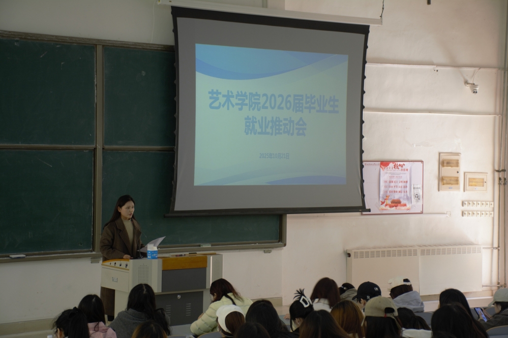 10月21日,艺术学院召开2026届毕业生就业推动大会。艺术学院党总支书记翟文、学工办辅导员及2026届全体毕业生参会。本次大会聚焦于统一思想、凝聚共识、明晰路径,旨在引导毕业生树立积极的就业心态与科学的择业观念,为即将到来的就业季做好充分准备。