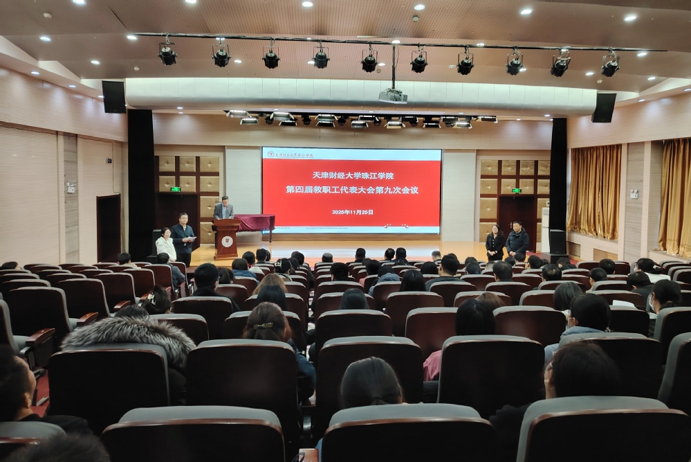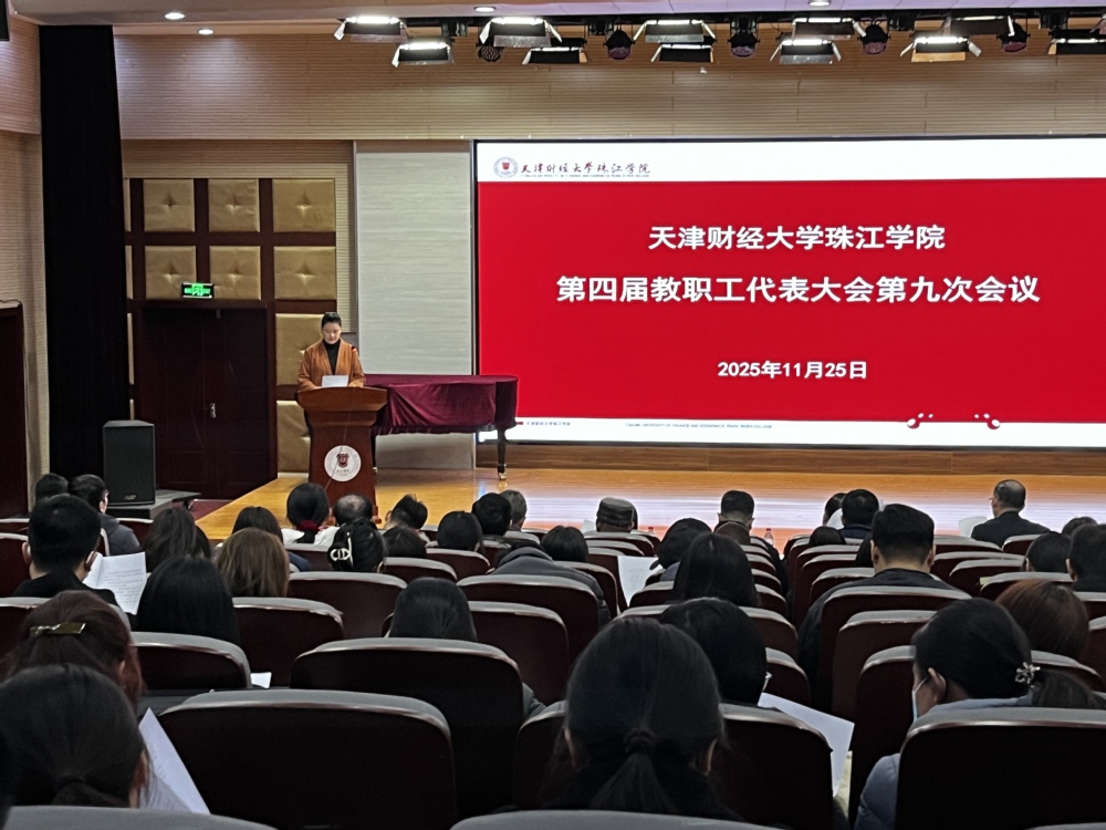 11月25日,学院第四届教职工代表大会第九次会议在弘毅楼报告厅召开。会议审议了《天津财经大学珠江学院章程(审议稿)》《天津财经大学珠江学院2025年度依法治校工作报告(审议稿)》。教职工代表共80人参加了会议。会议由学院工会副主席主持。