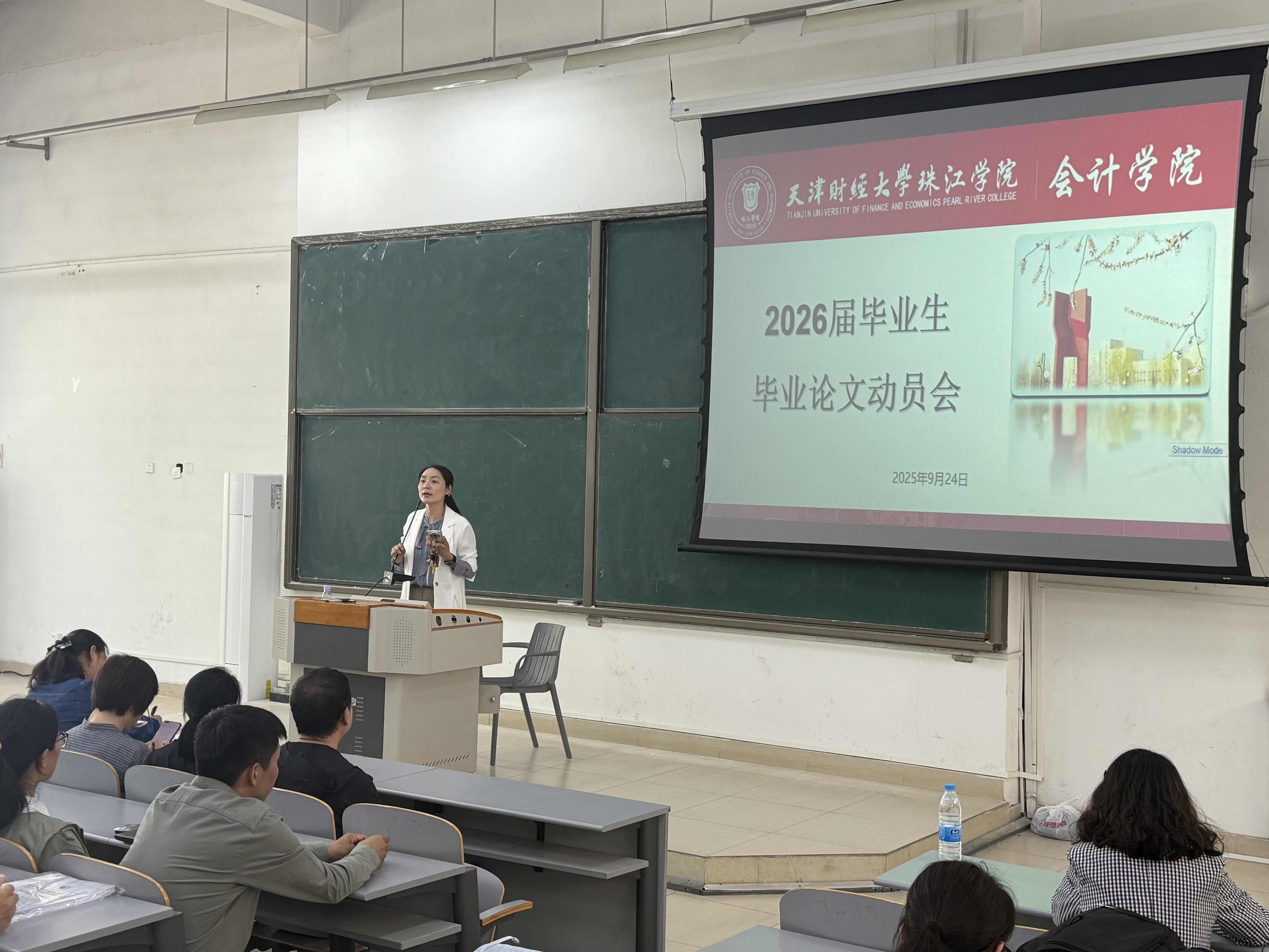 为扎实推进2026届本科毕业论文(设计)工作,规范过程管理,提升论文质量,引导学生明确任务目标与努力方向。9月24日下午,会计学院召开2026届本科毕业论文动员大会。各位指导教师及2026届全体毕业生参会。