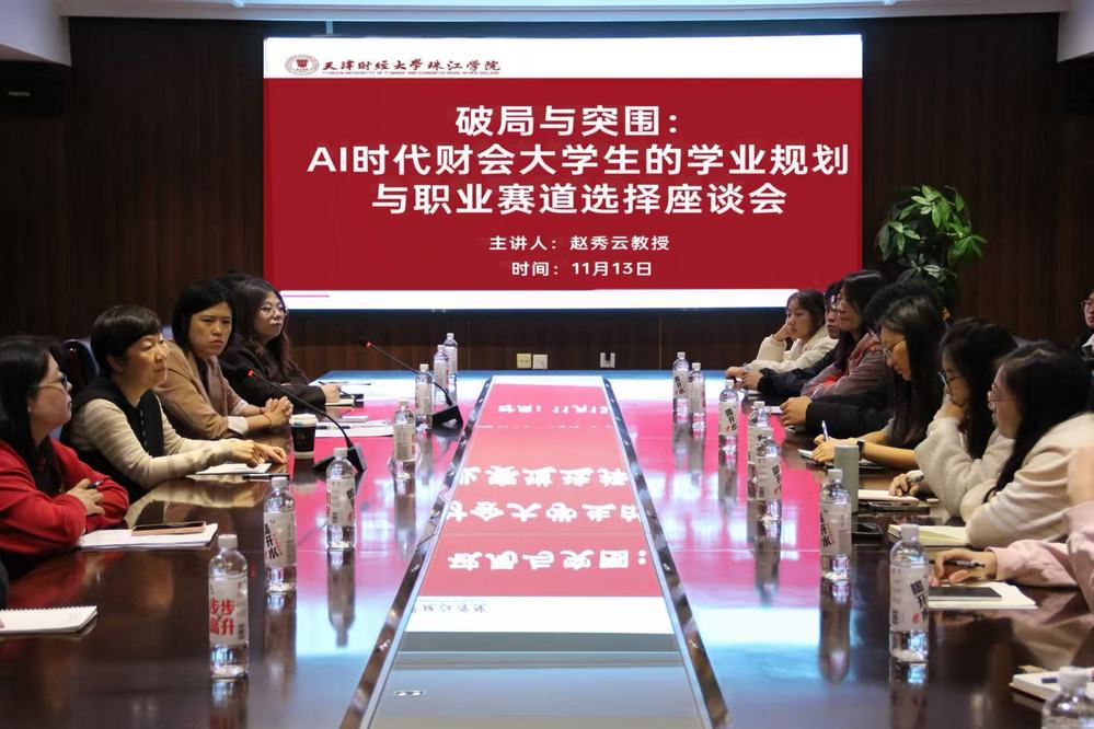 2025年11月13日上午,天津财经大学珠江学院会计学院于中和楼C414举办“破局与突围:AI时代财会大学生的学业规划与职业赛道选择”主题座谈会。本次座谈会特别邀请会计学院会计学学科带头人赵秀云教授担任主讲,由会计学院党总支书记、学工办主任毕玉主持。