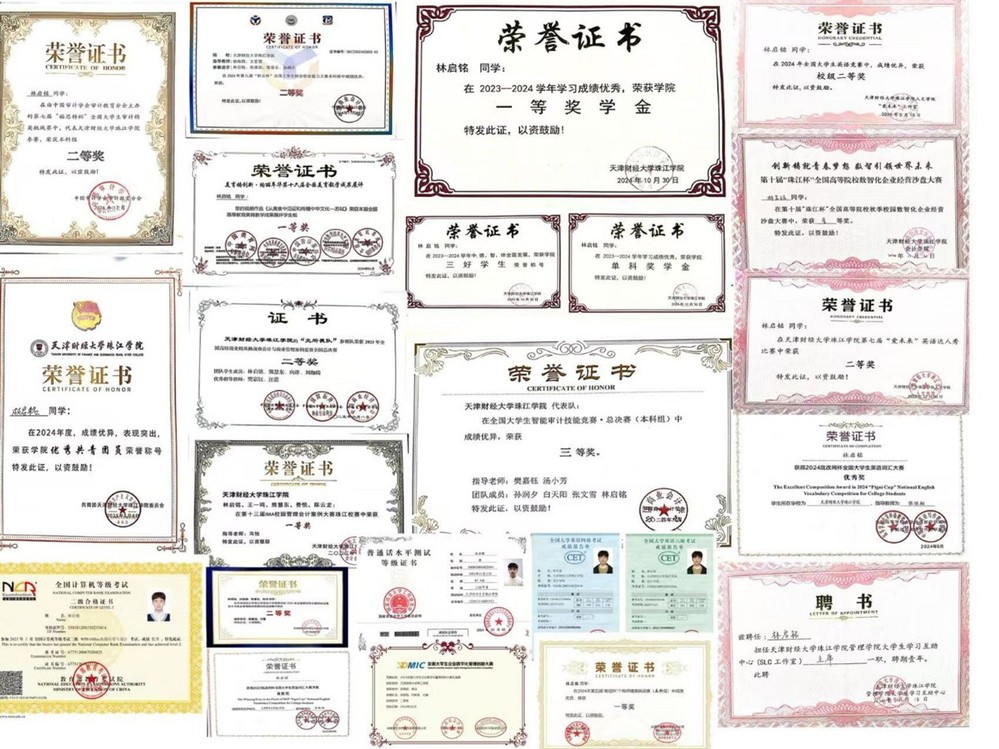林启铭,男,汉族,共青团员,天津财经大学珠江学院会计学院2022级审计学专业学生,大学生学习互助中心主席。荣获2024-2025年度国家奖学金,多次获得学院奖学金,多次获得三好学生、优秀共青团员等荣誉称号。