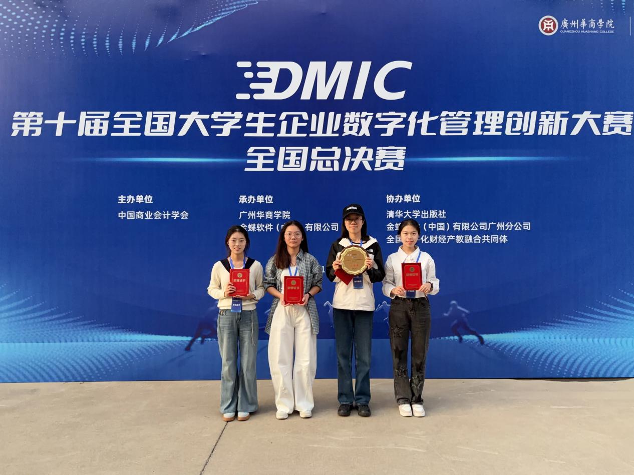 近日,第十届全国大学生企业数字化管理创新大赛全国总决赛在广州华商学院圆满落幕。由我院会计2317班梁怡、会计2326班穆晨语与王含瑜三名同学组成的代表队,在高樱涤、张琦两位老师的悉心指导下,凭借扎实的专业功底与创新的数据分析能力,从全国千余支参赛队伍中脱颖而出,荣获全国总决赛二等奖。指导教师高樱涤荣获“杰出指导教师”。