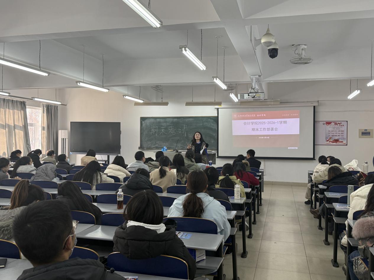 为进一步规范期末考试管理,确保期末工作平稳有序开展,2025年12月24日下午,会计学院在日新101召开期末工作部署会。会计学院党总支书记毕玉、常务副院长徐立文、院长助理汪蕾以及全体教师参会。会议由院长助理汪蕾主持。